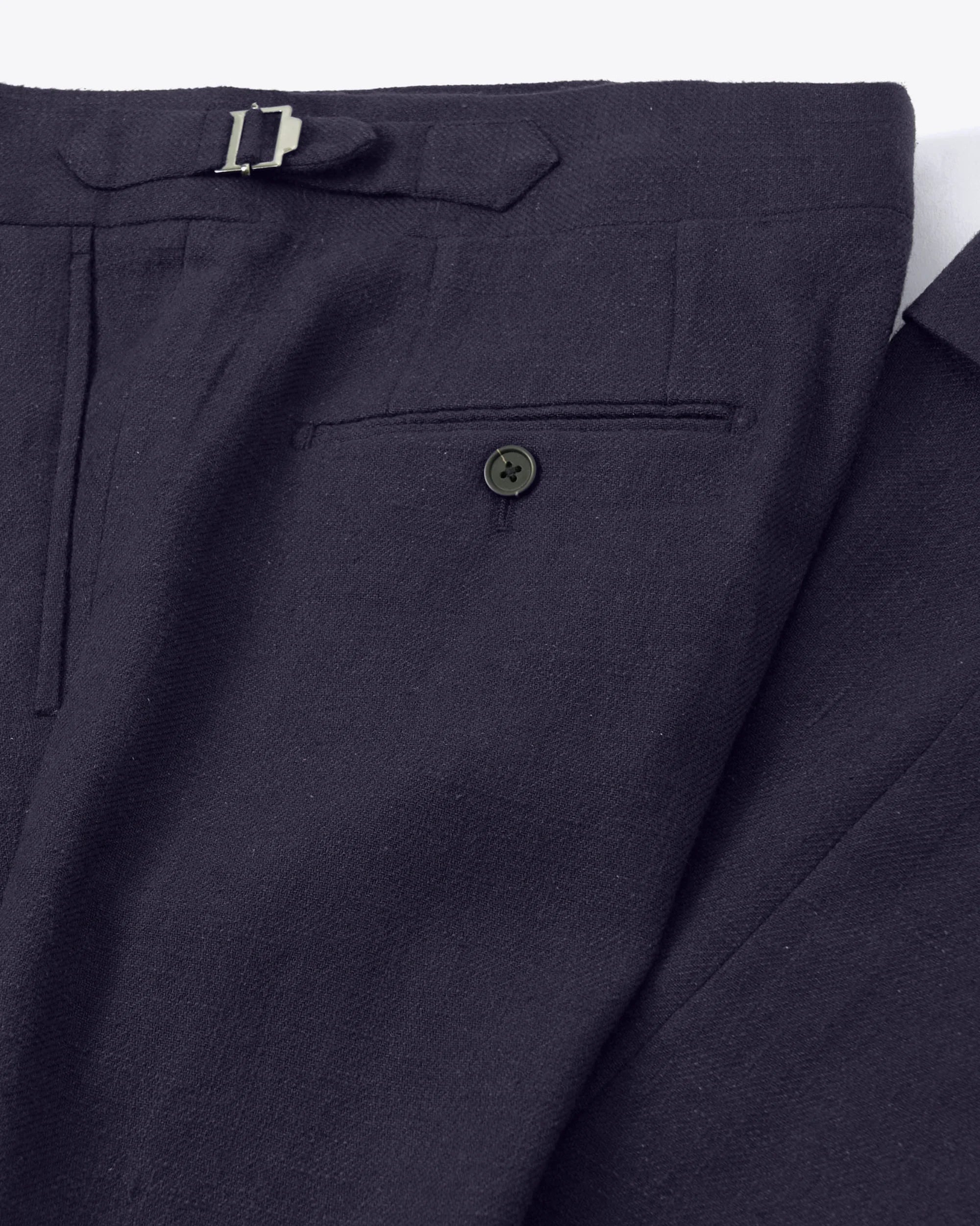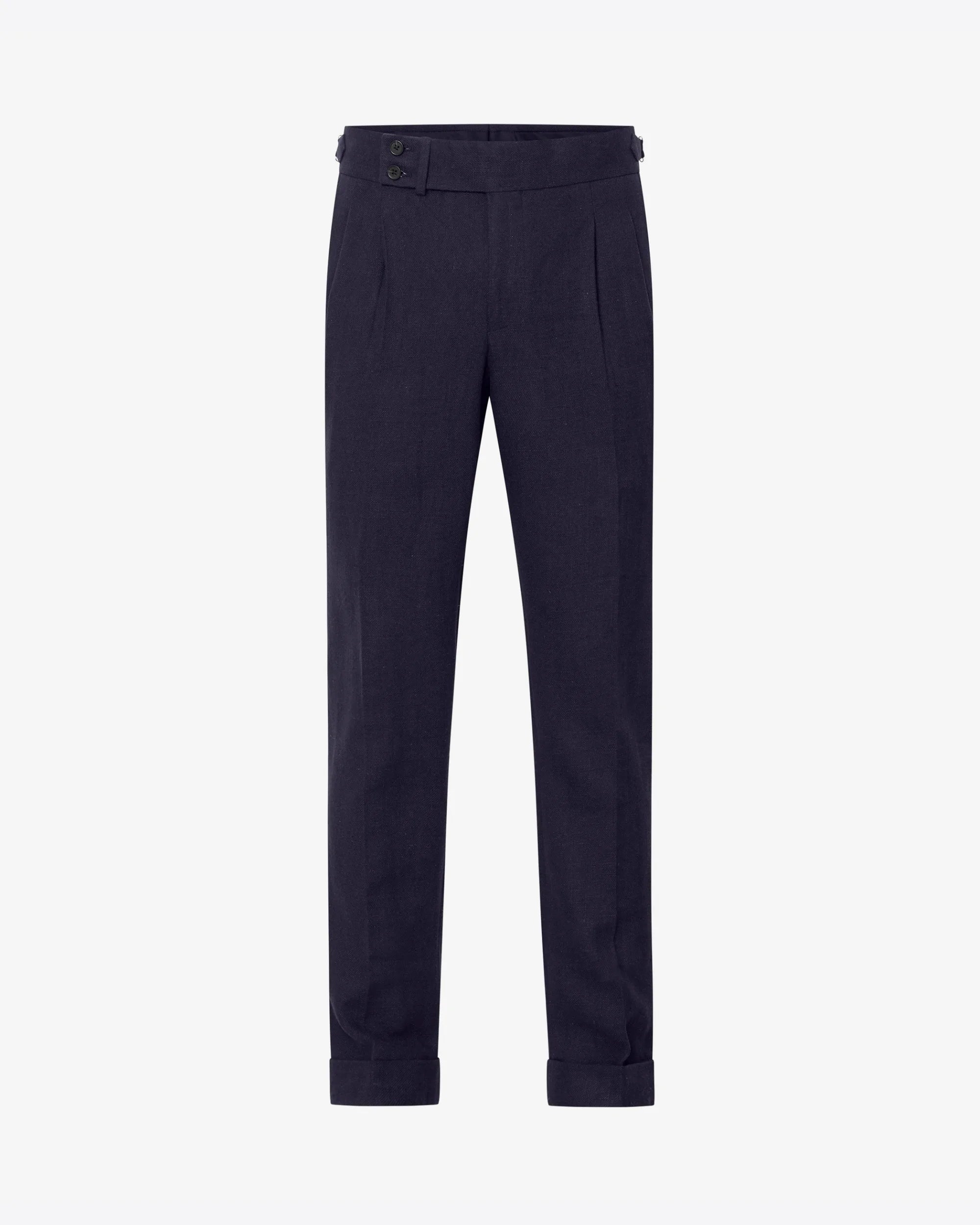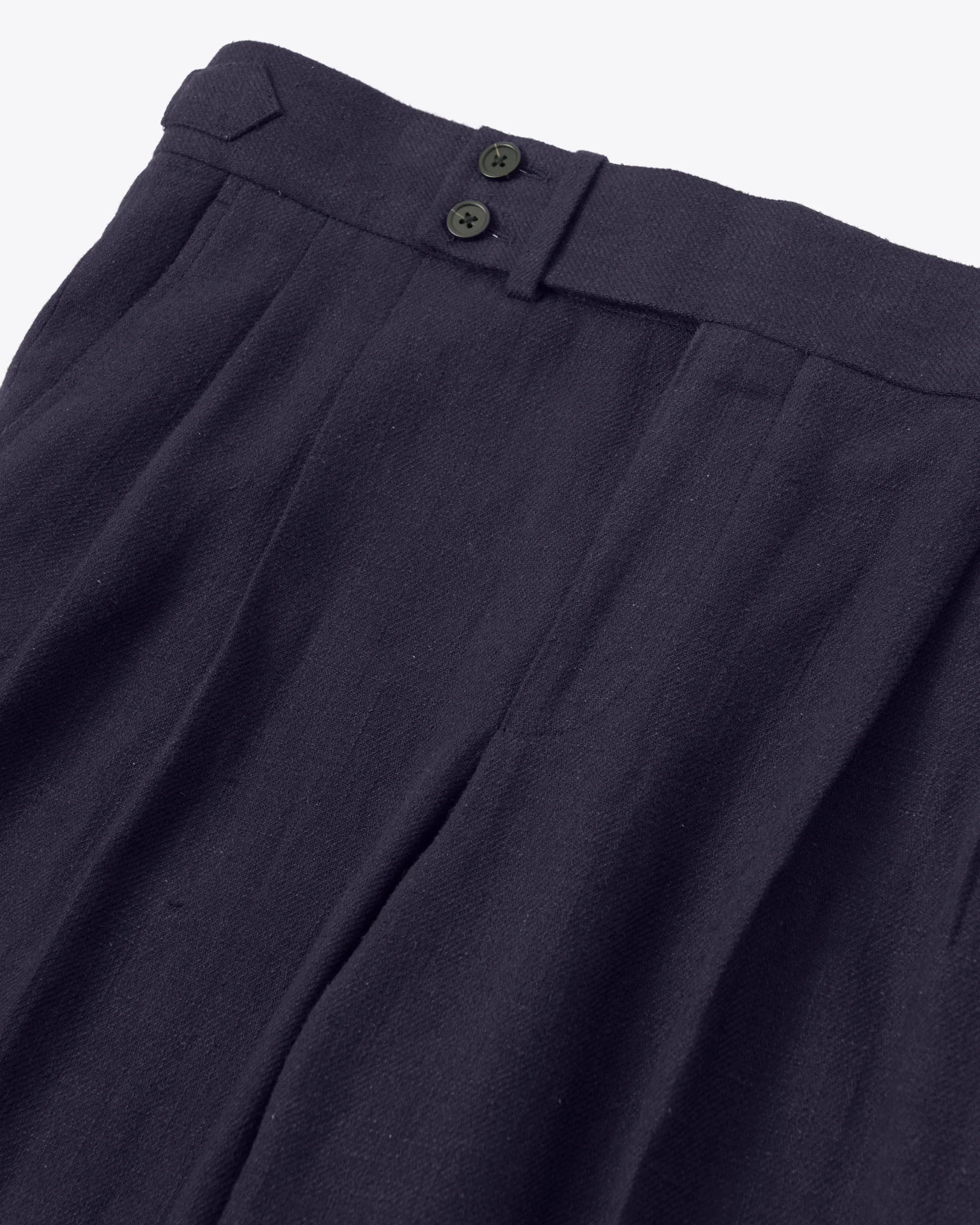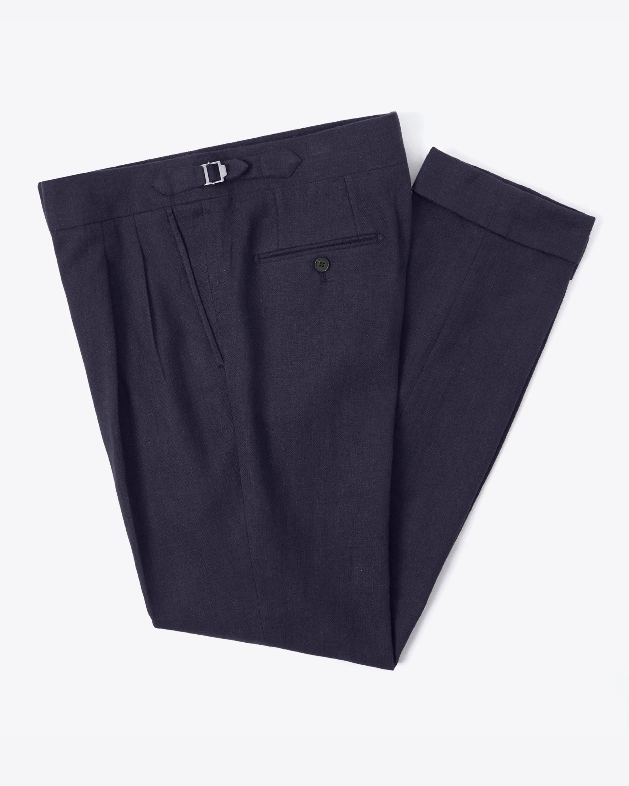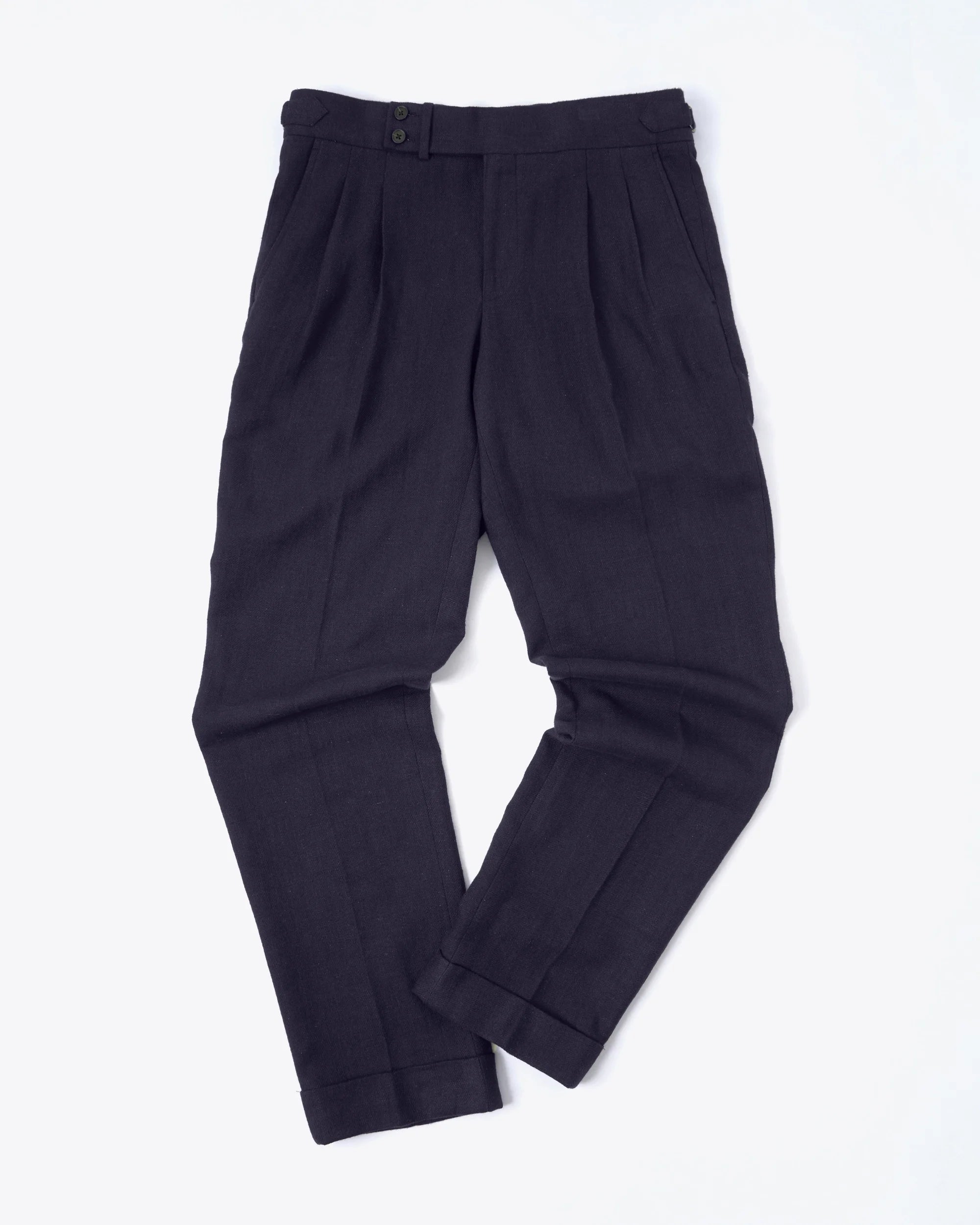Elevate your wardrobe with our Navy Pleated Pants crafted from the same luxuriously soft fabrication as our Deconstructed Men's Jacket. Featuring double pleats for a nod to sartorial tailoring, these pants boast a timeless elegance with a relaxed modern interpretation.