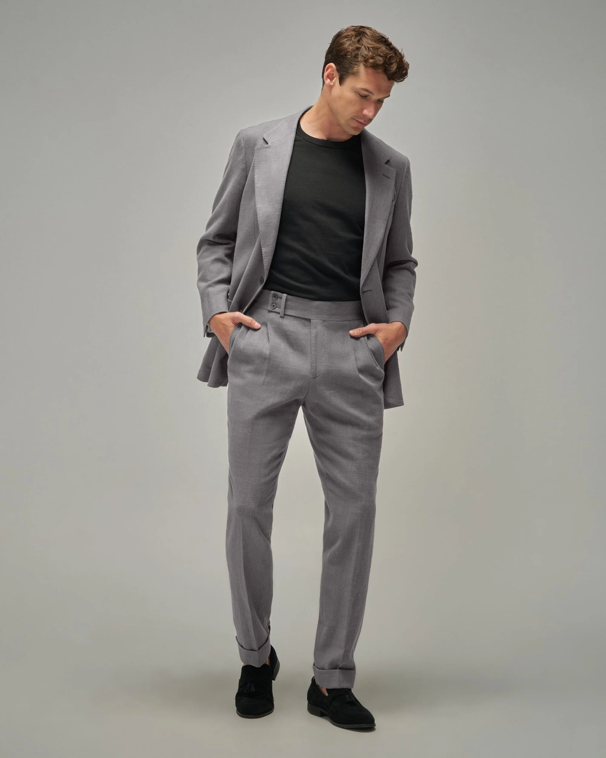 Introducing our Casual Suit in Grey, where relaxed sophistication meets timeless tailoring. This ensemble pairs our Deconstructed Men's Jacket with our Pleated Pants, both crafted from the same luxuriously soft canvas fabric, for an epitome of effortless style and comfort.