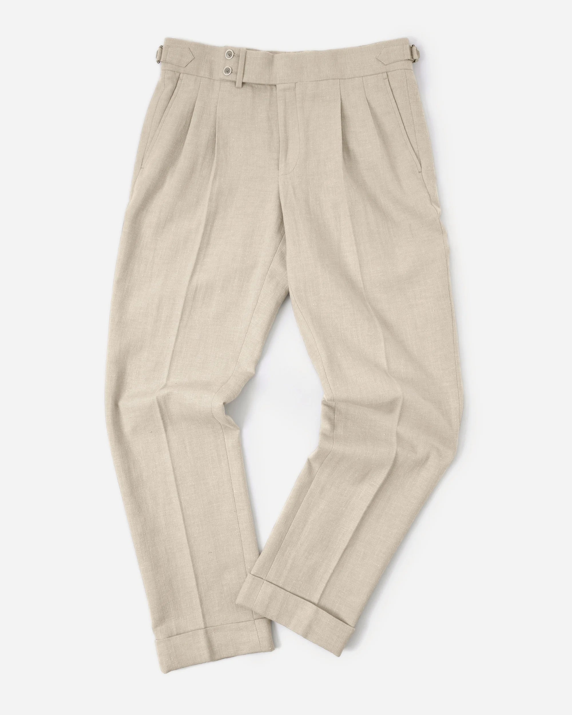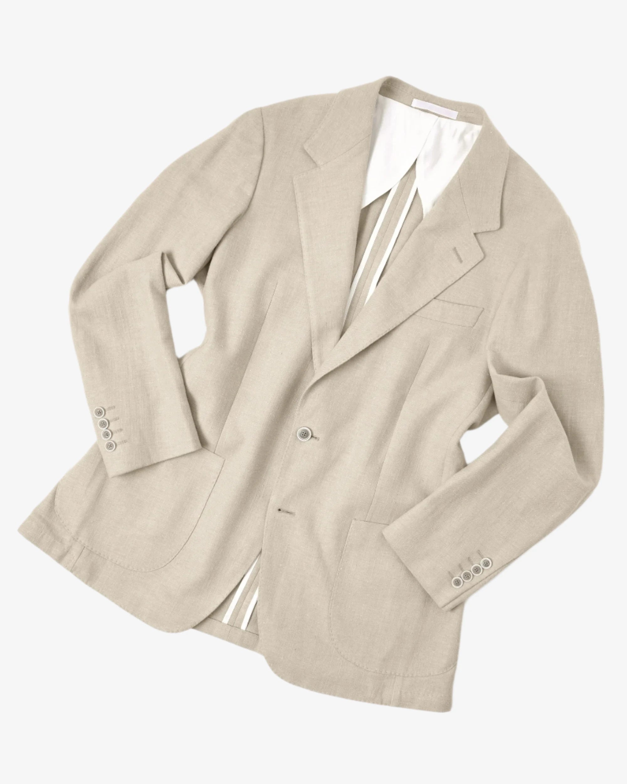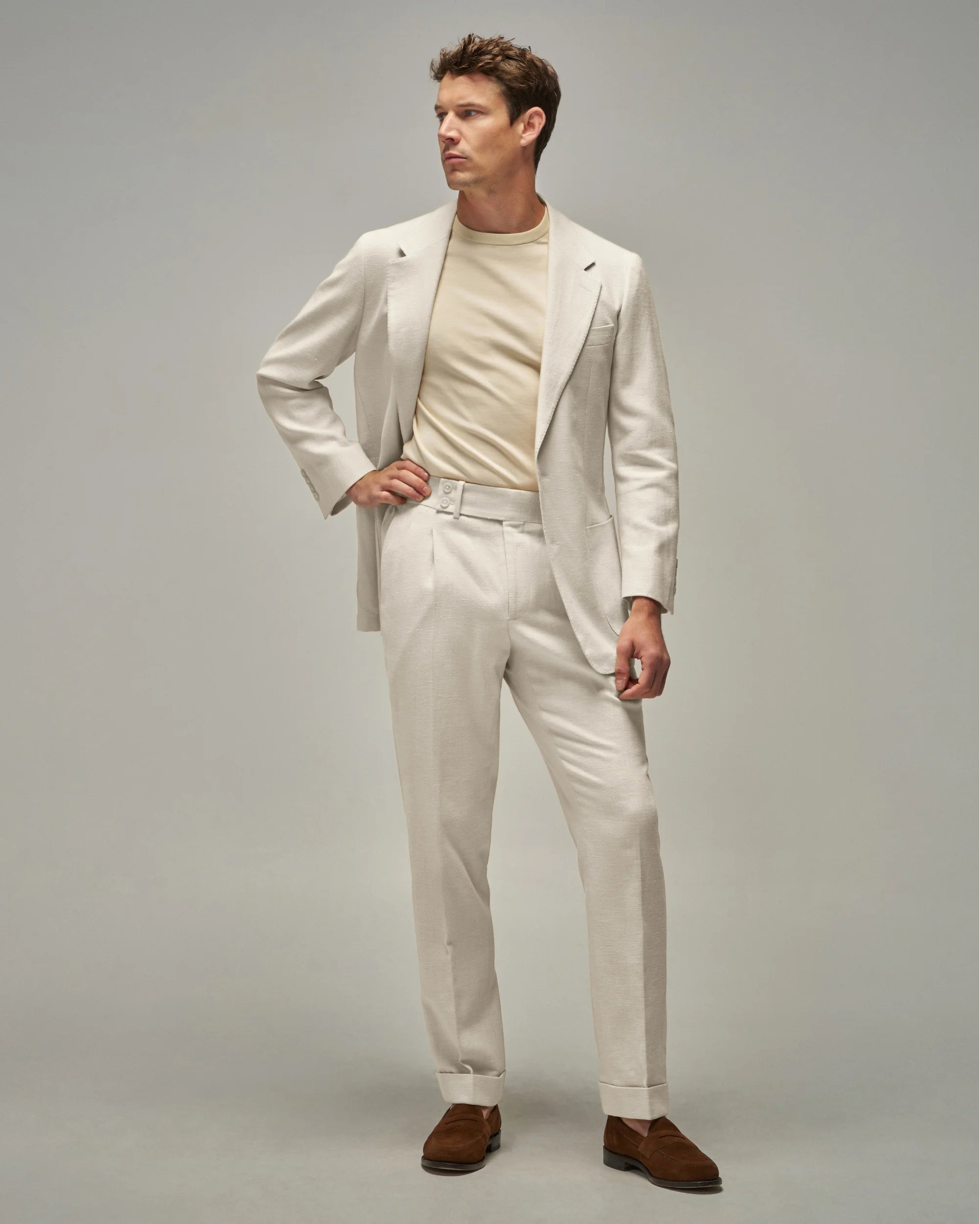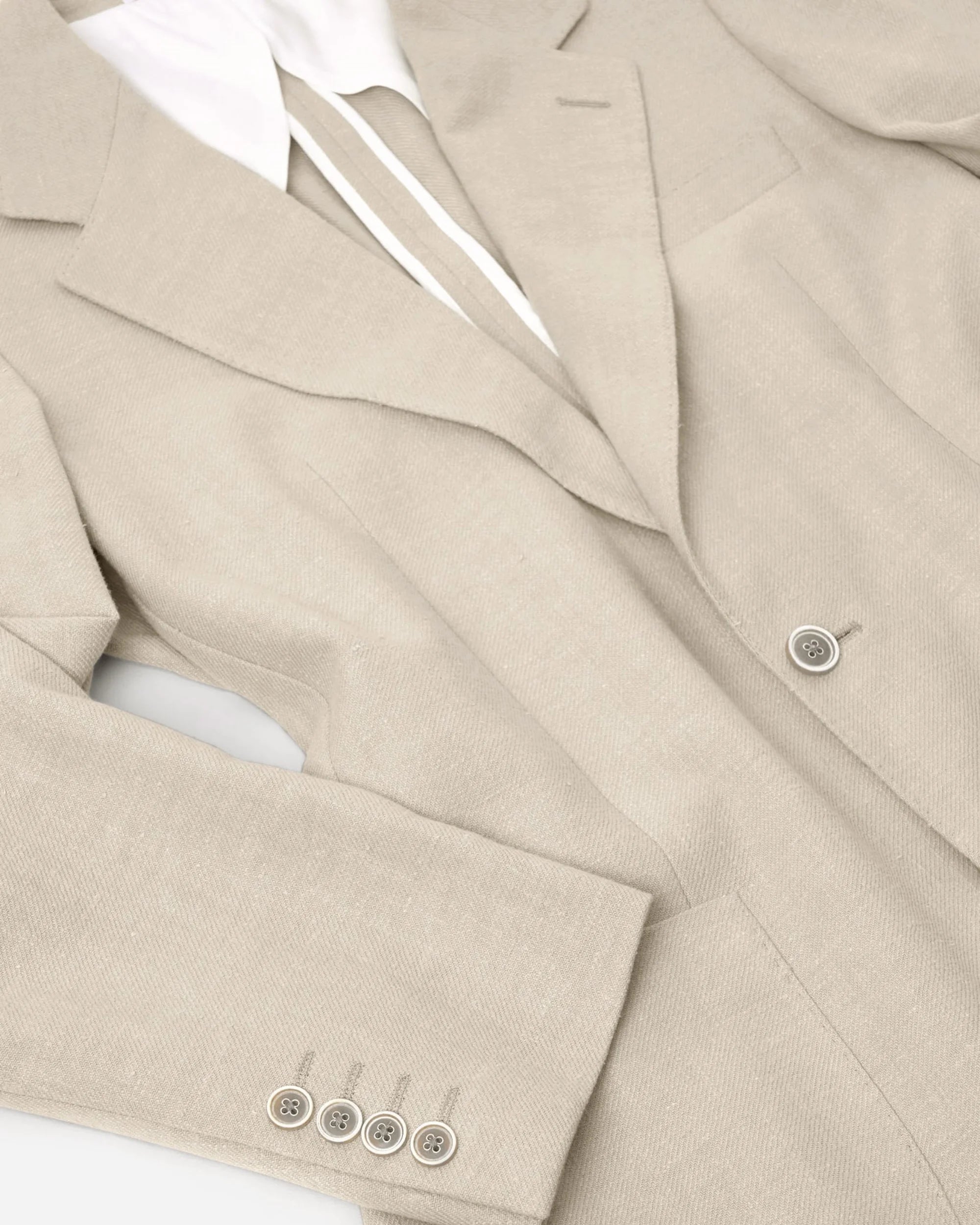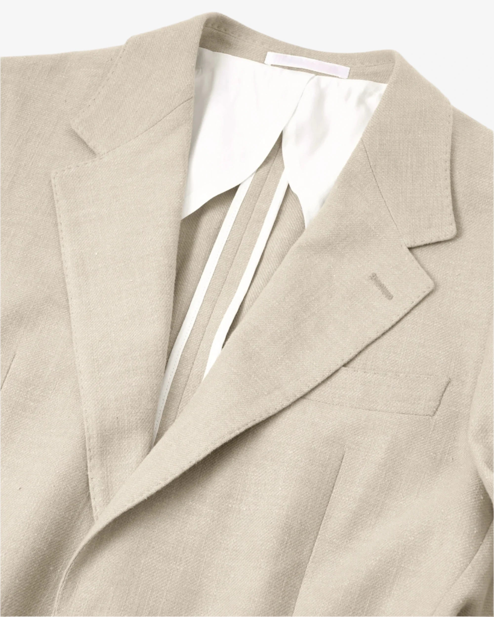Introducing our Casual Suit in Oatmeal, where relaxed sophistication meets timeless tailoring. This ensemble pairs our Deconstructed Men's Jacket with our Pleated Pants, both crafted from the same luxuriously soft canvas fabric, for an epitome of effortless style and comfort.