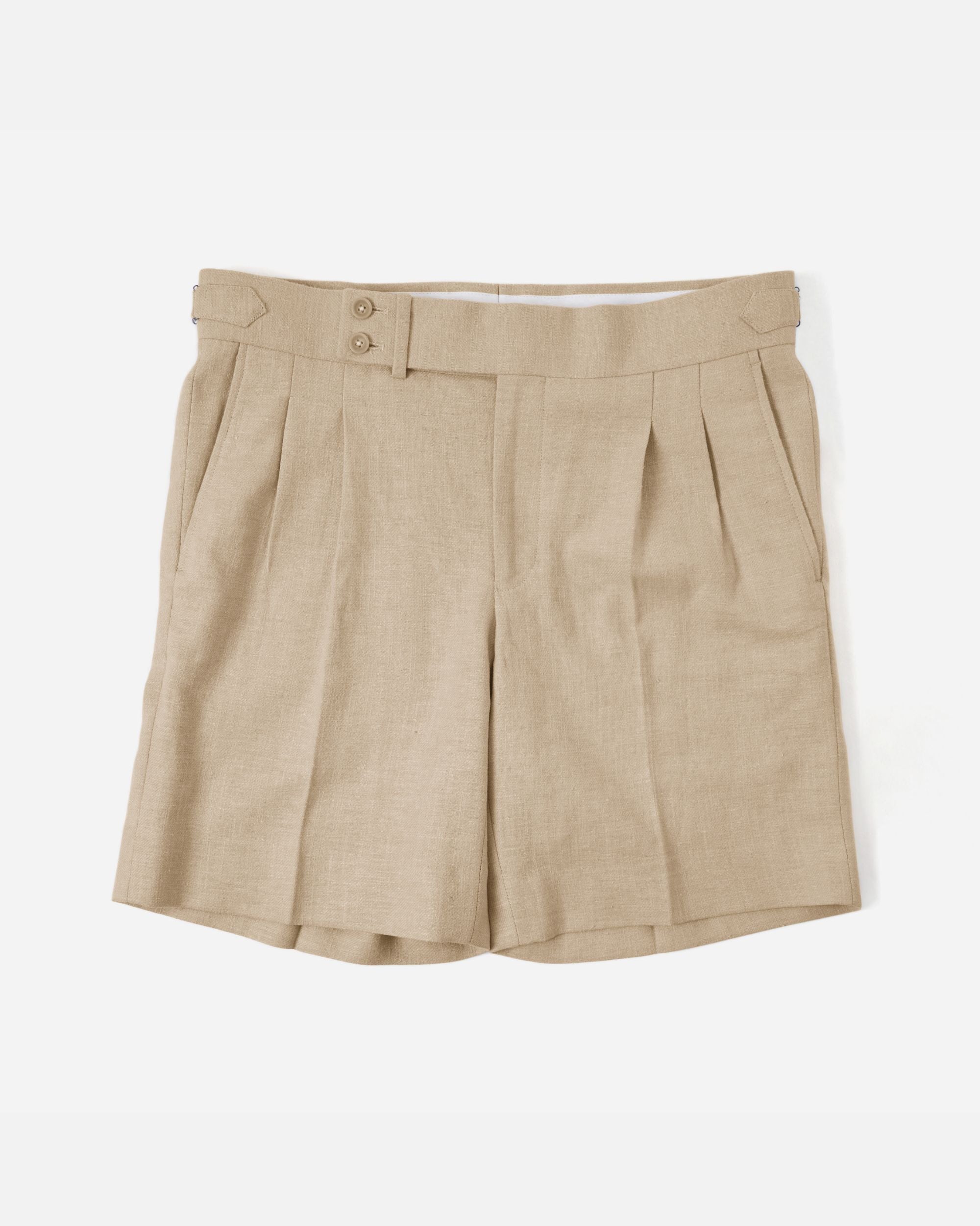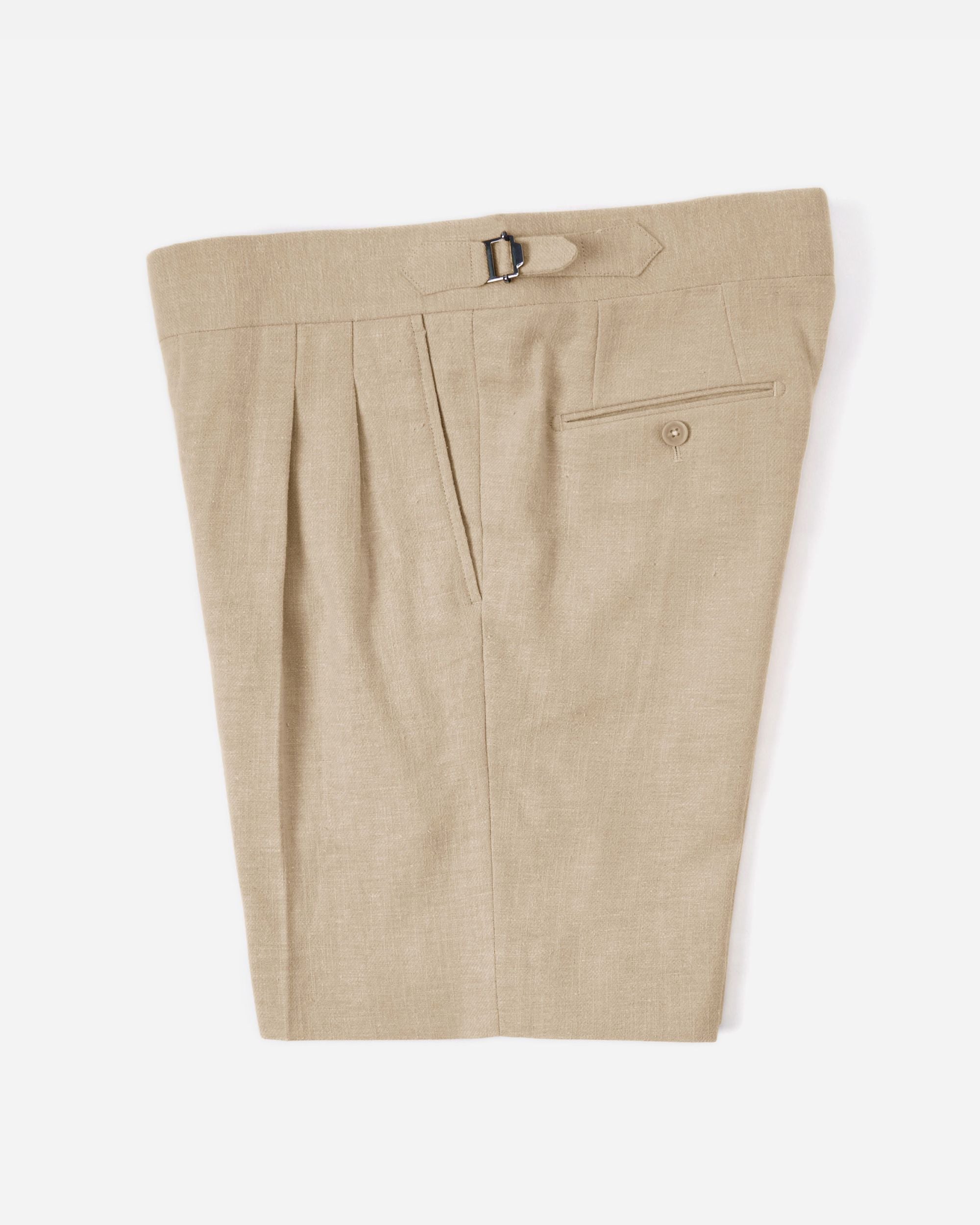 Crafted from sumptuously soft fabric, these shorts in Beige offer a refined yet relaxed appeal. With their tailored silhouette and double pleats, they echo the sartorial elegance whilst offering a more casual aesthetic.