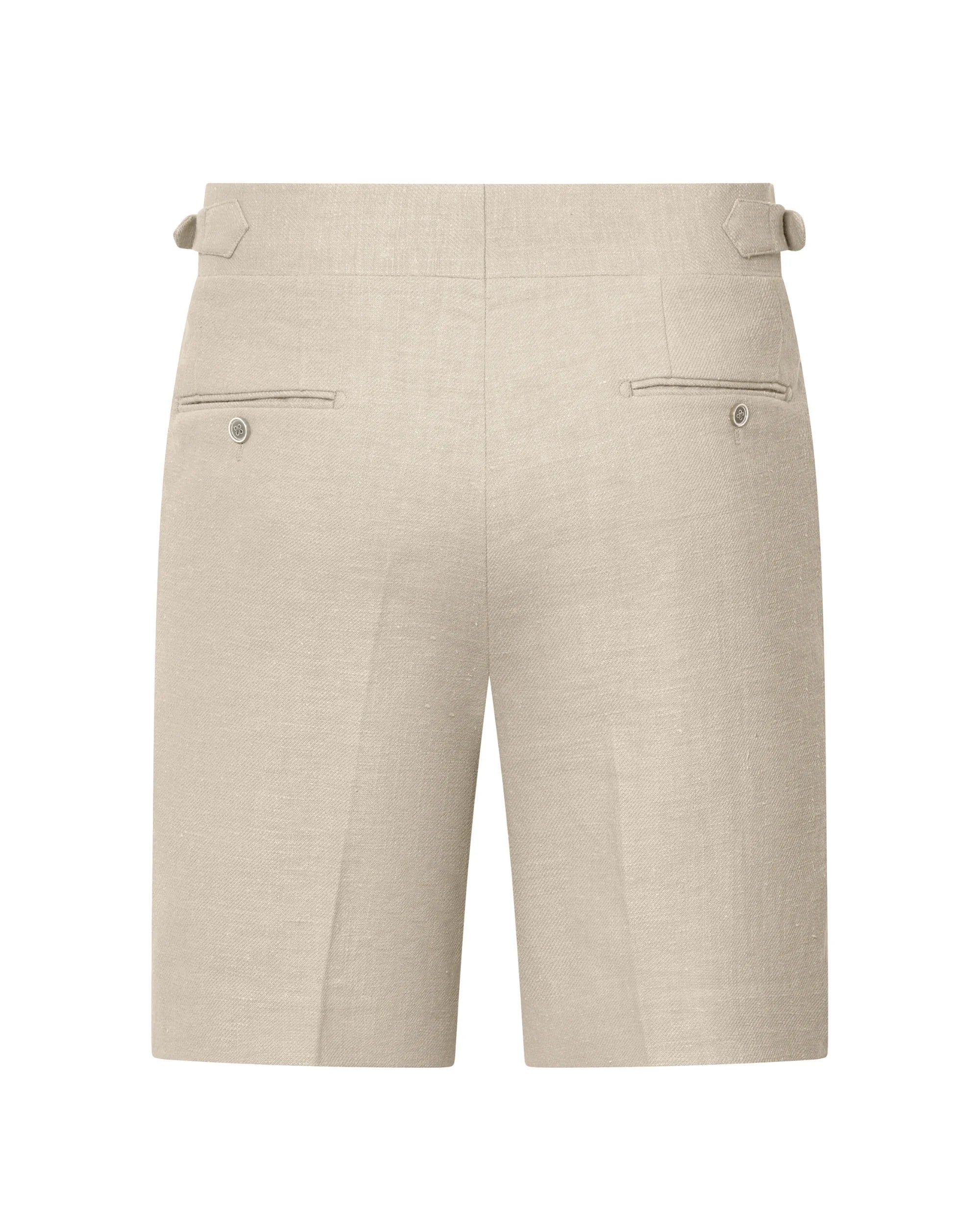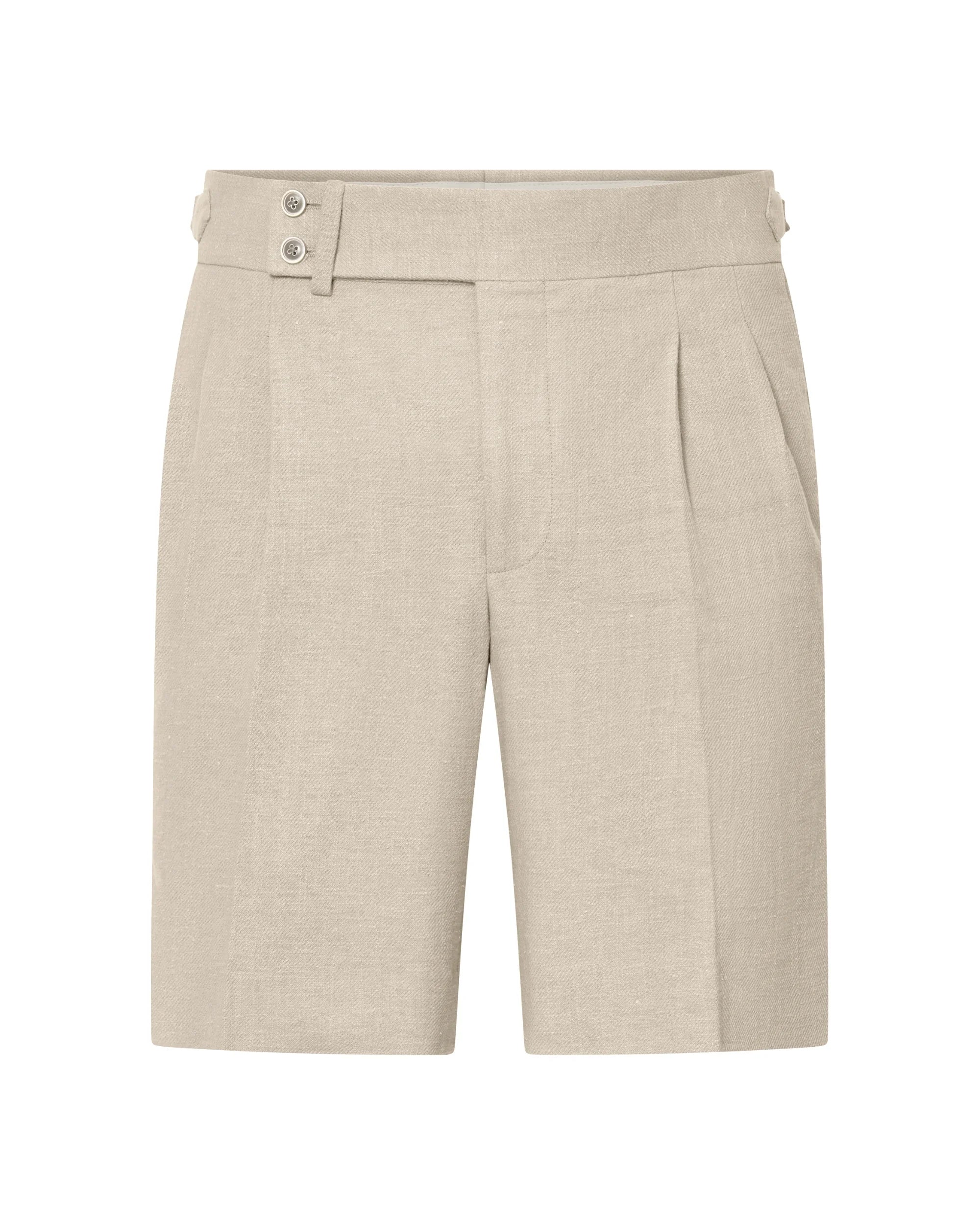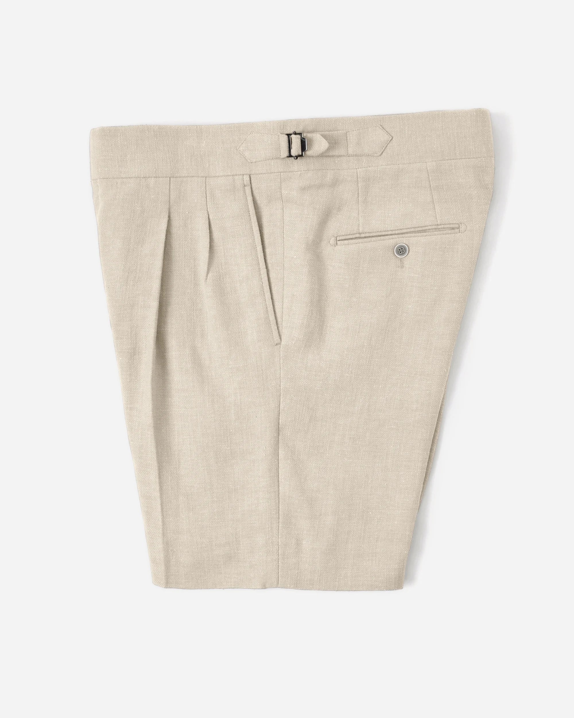 Crafted from sumptuously soft fabric, these shorts in Oatmeal offer a refined yet relaxed appeal. With their tailored silhouette and double pleats, they echo the sartorial elegance whilst offering a more casual aesthetic.
