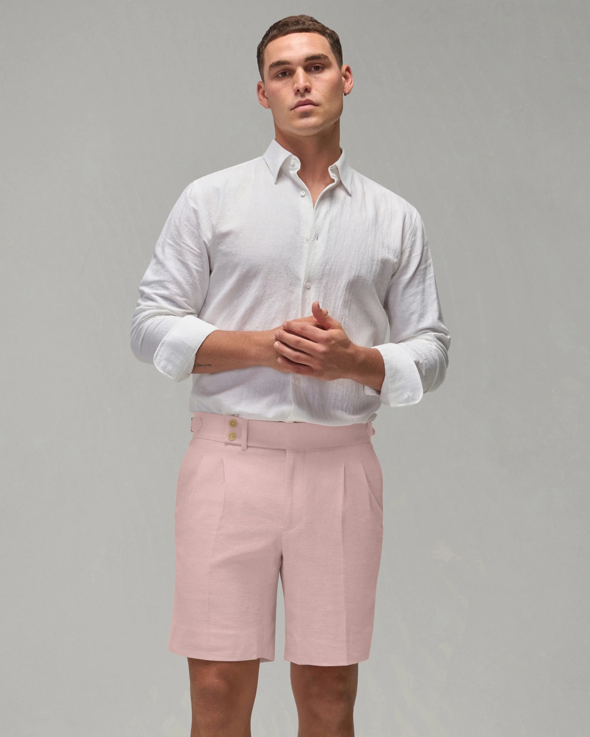 Crafted from sumptuously soft fabric, these shorts in Pink offer a refined yet relaxed appeal. With their tailored silhouette and double pleats, they echo the sartorial elegance whilst offering a more casual aesthetic.
