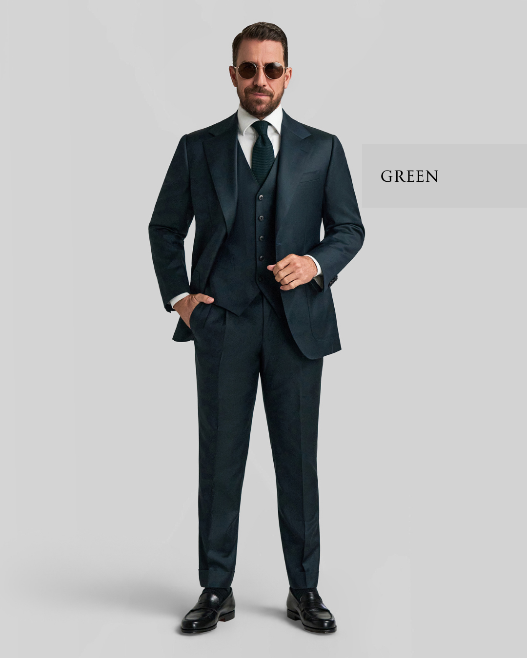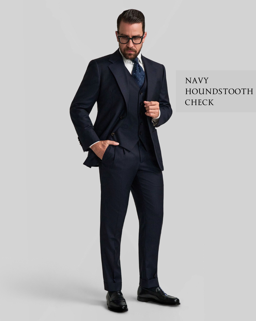 Easy online customisation: select style options, monogram & fabric of your suits and we will construct the suit from your personal body measurements with either an in-store fitting, online or existing measurements.