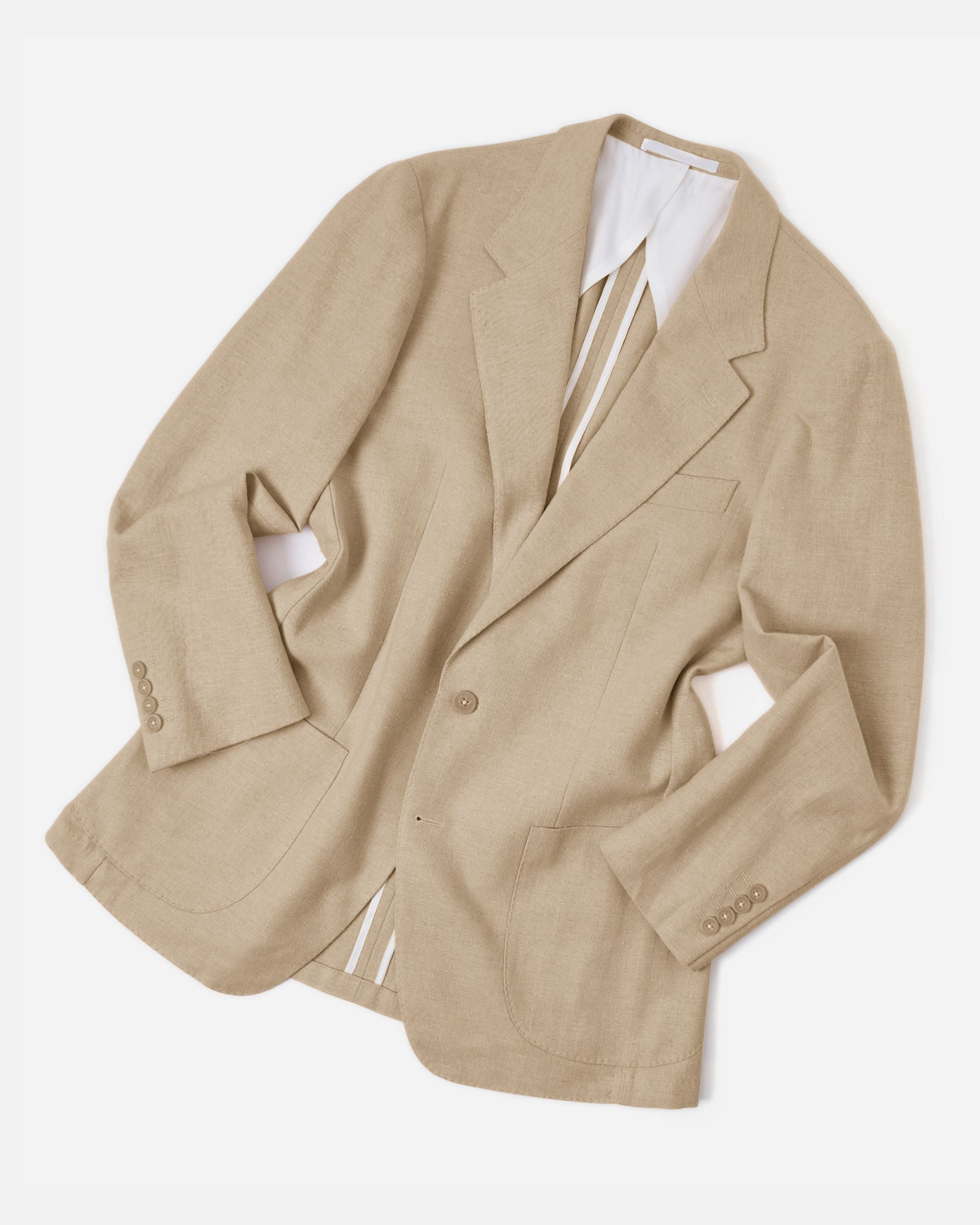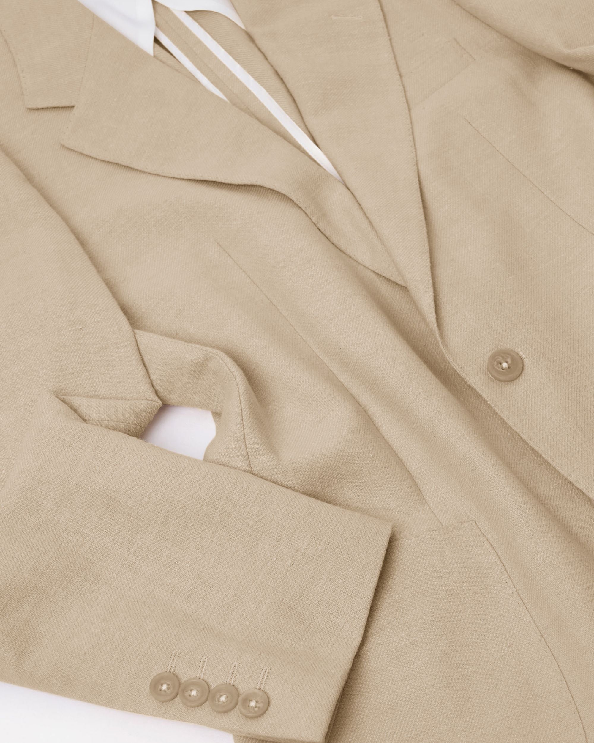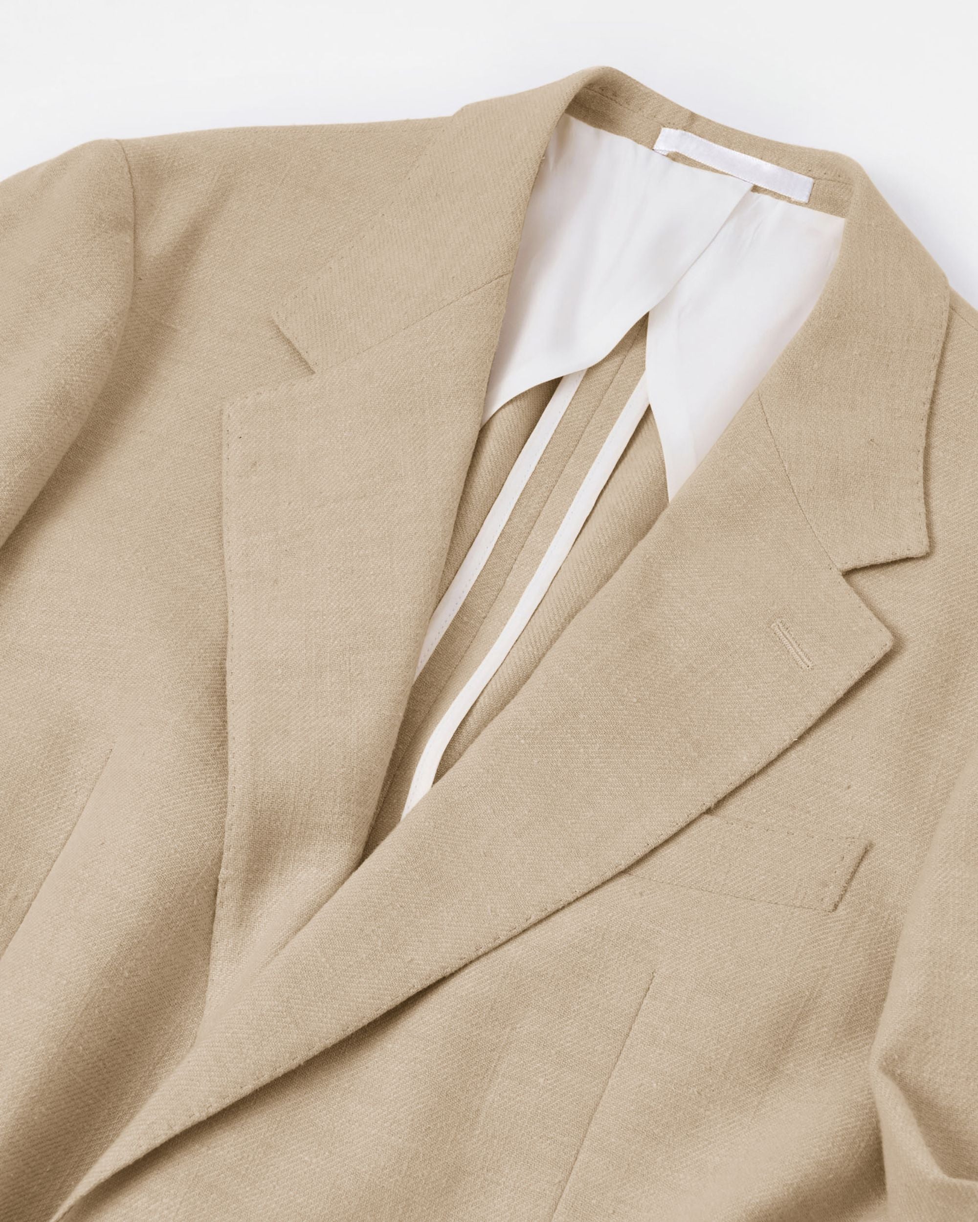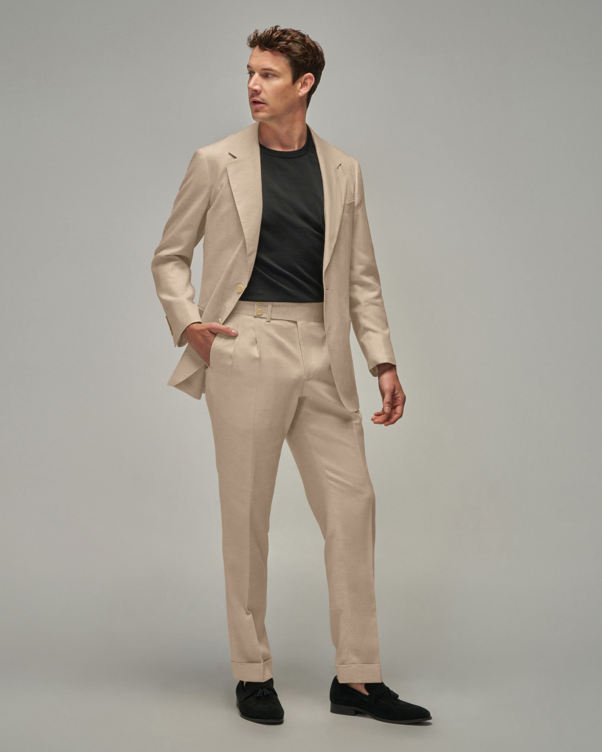 Introducing our Casual Suit in Beige, where relaxed sophistication meets timeless tailoring. This ensemble pairs our Deconstructed Men's Jacket with our Pleated Pants, both crafted from the same luxuriously soft canvas fabric, for an epitome of effortless style and comfort.