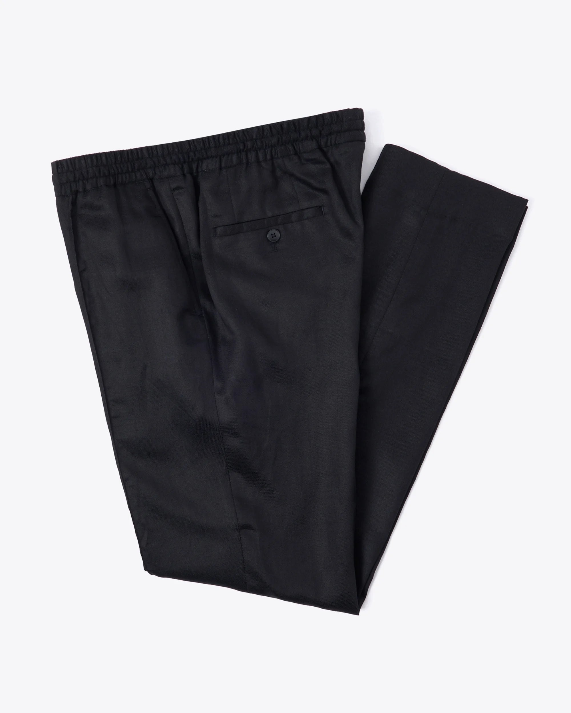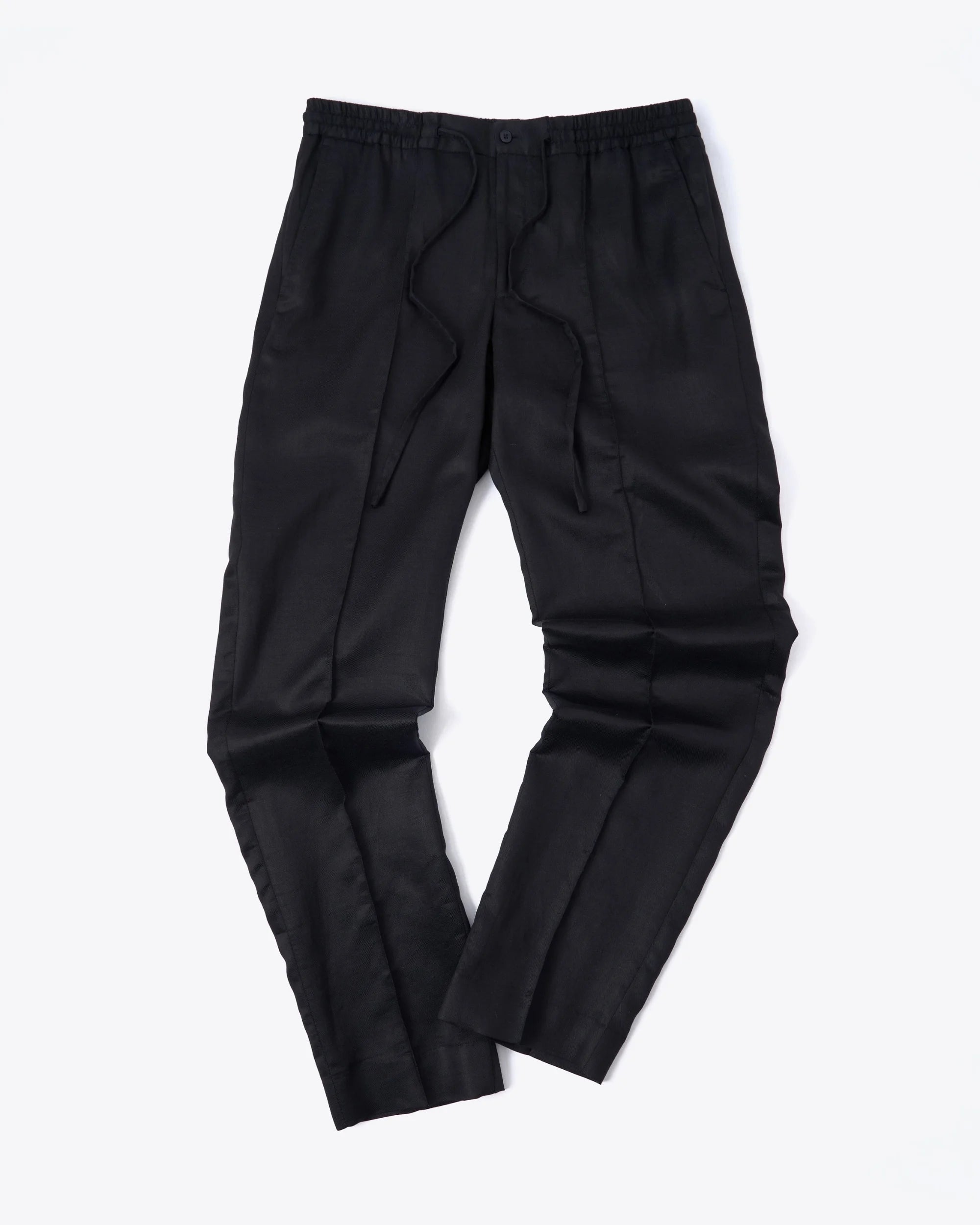 Elevate your style with our Havana Pants in Black, crafted in 100% Ramie for a luxurious feel. The relaxed fit combined with an elastic waist and drawstring, allows for maximum comfort and versatility. Finished with pinstitch front detailing, these pants exude sophistication and effortless elegance.