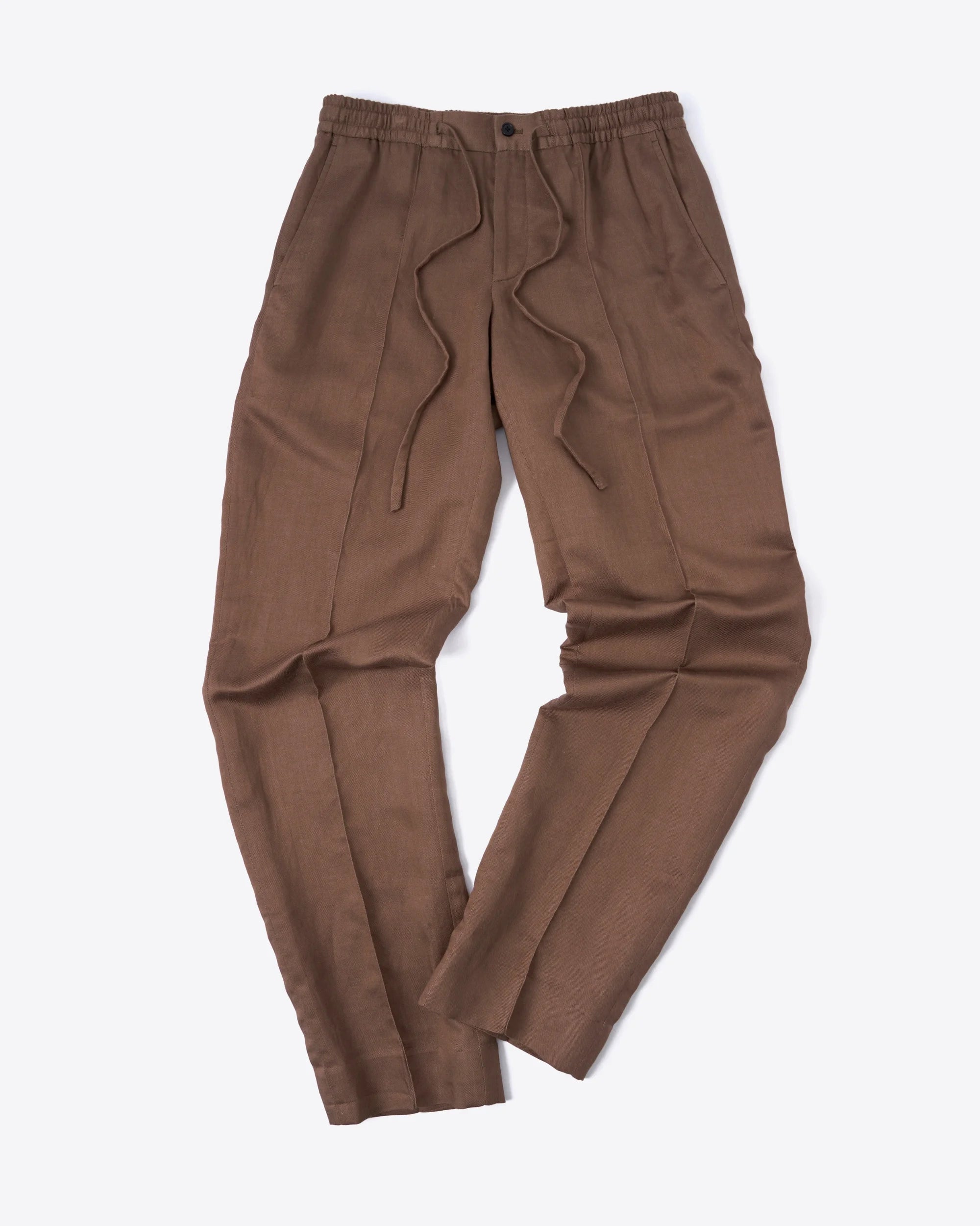 Elevate your style with our Havana Pants in Light Brown, crafted in 100% Ramie for a luxurious feel. The relaxed fit combined with an elastic waist and drawstring, allows for maximum comfort and versatility. Finished with pinstitch front detailing, these pants exude sophistication and effortless elegance.