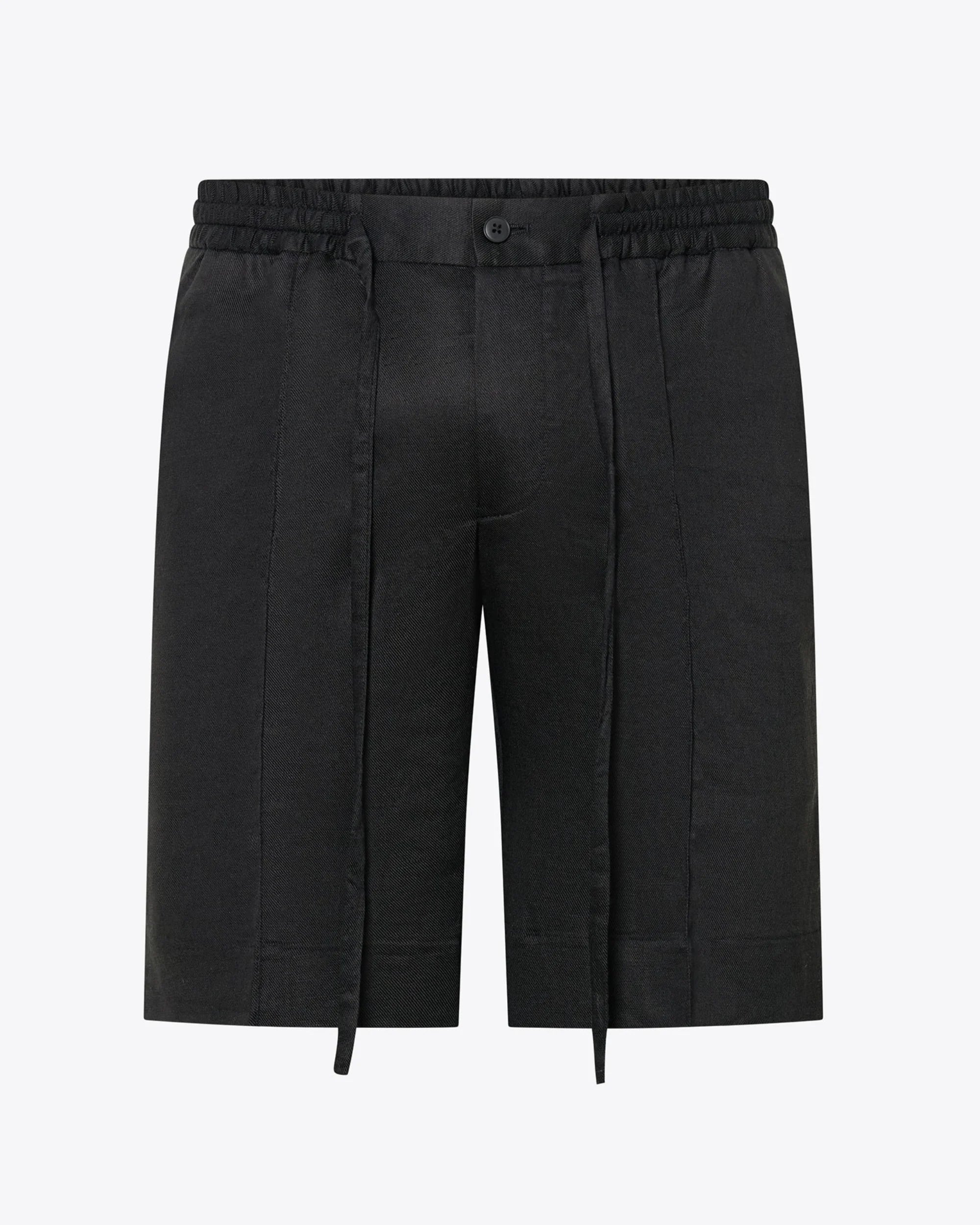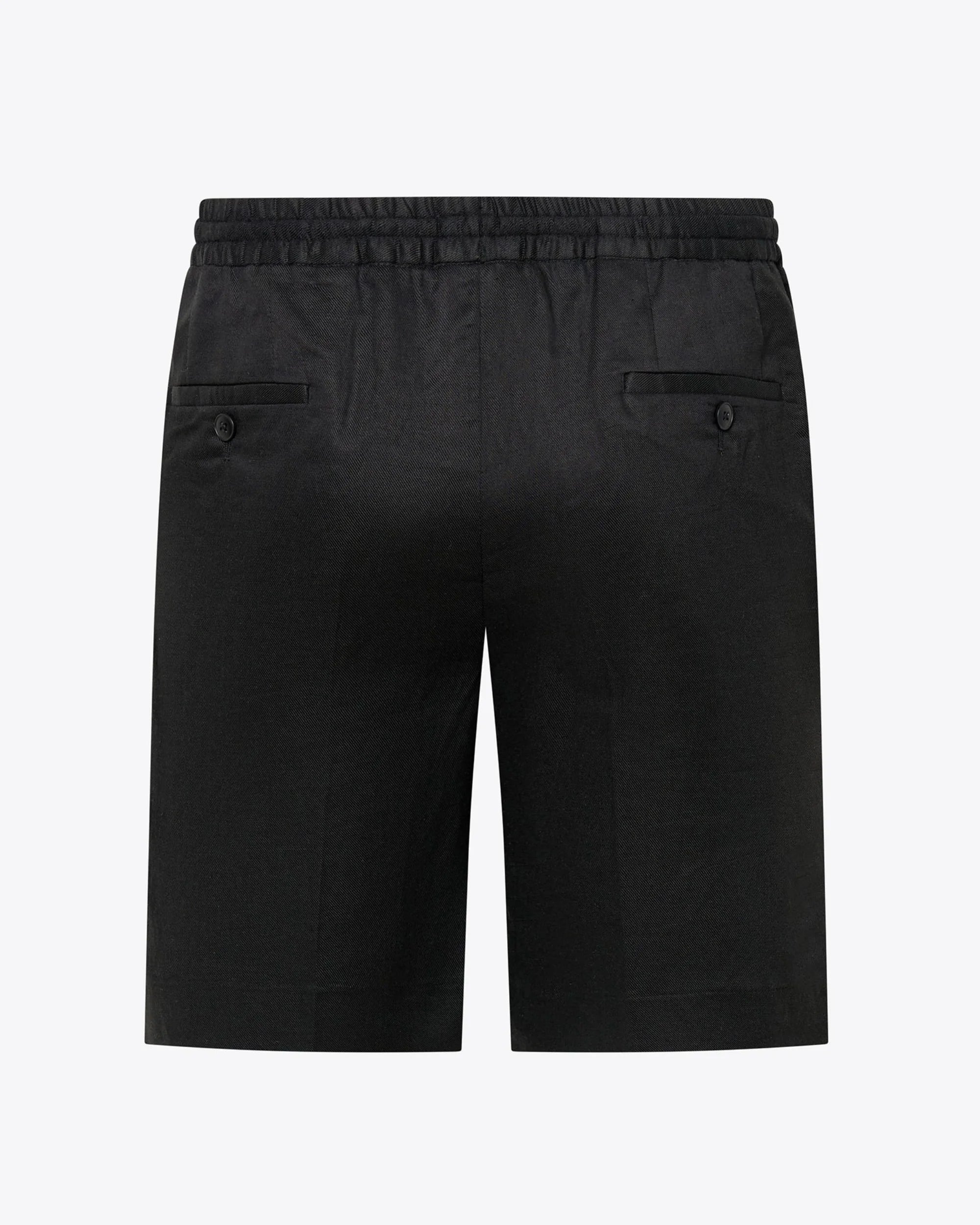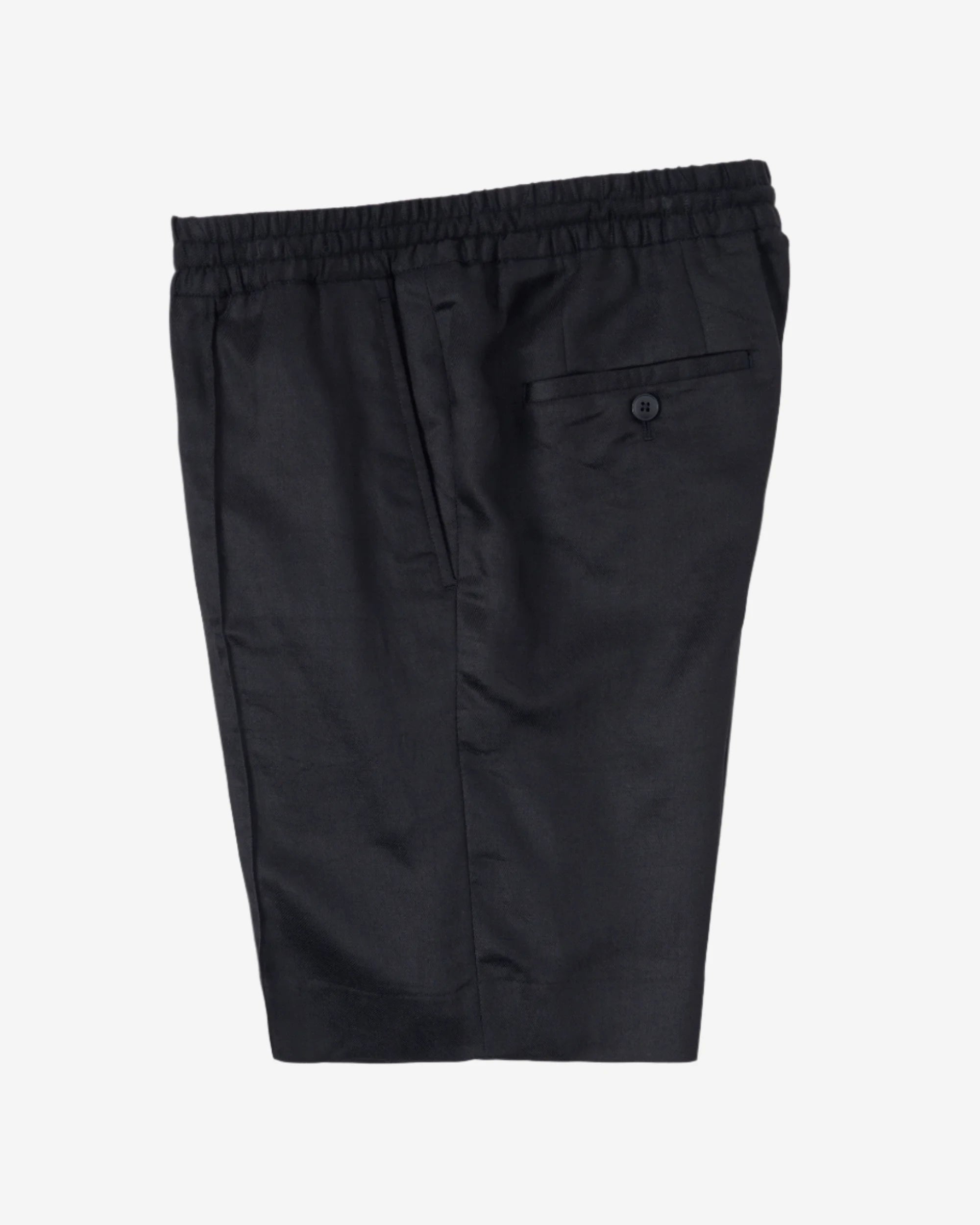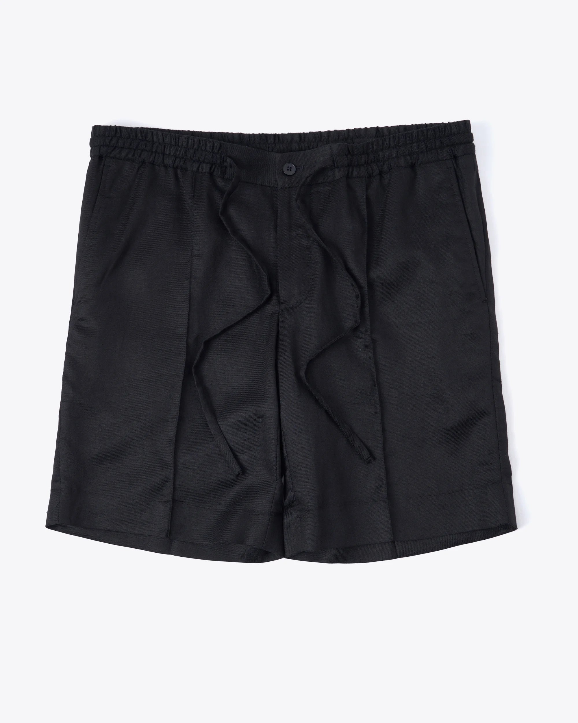 Indulge in luxury with our Havana Shorts in Black. Crafted from 100% Ramie, these shorts feature a unique seersucker texture and pinstitch front detailing. The elastic waistband with drawstring adds both comfort and style, making them perfect for any occasion.