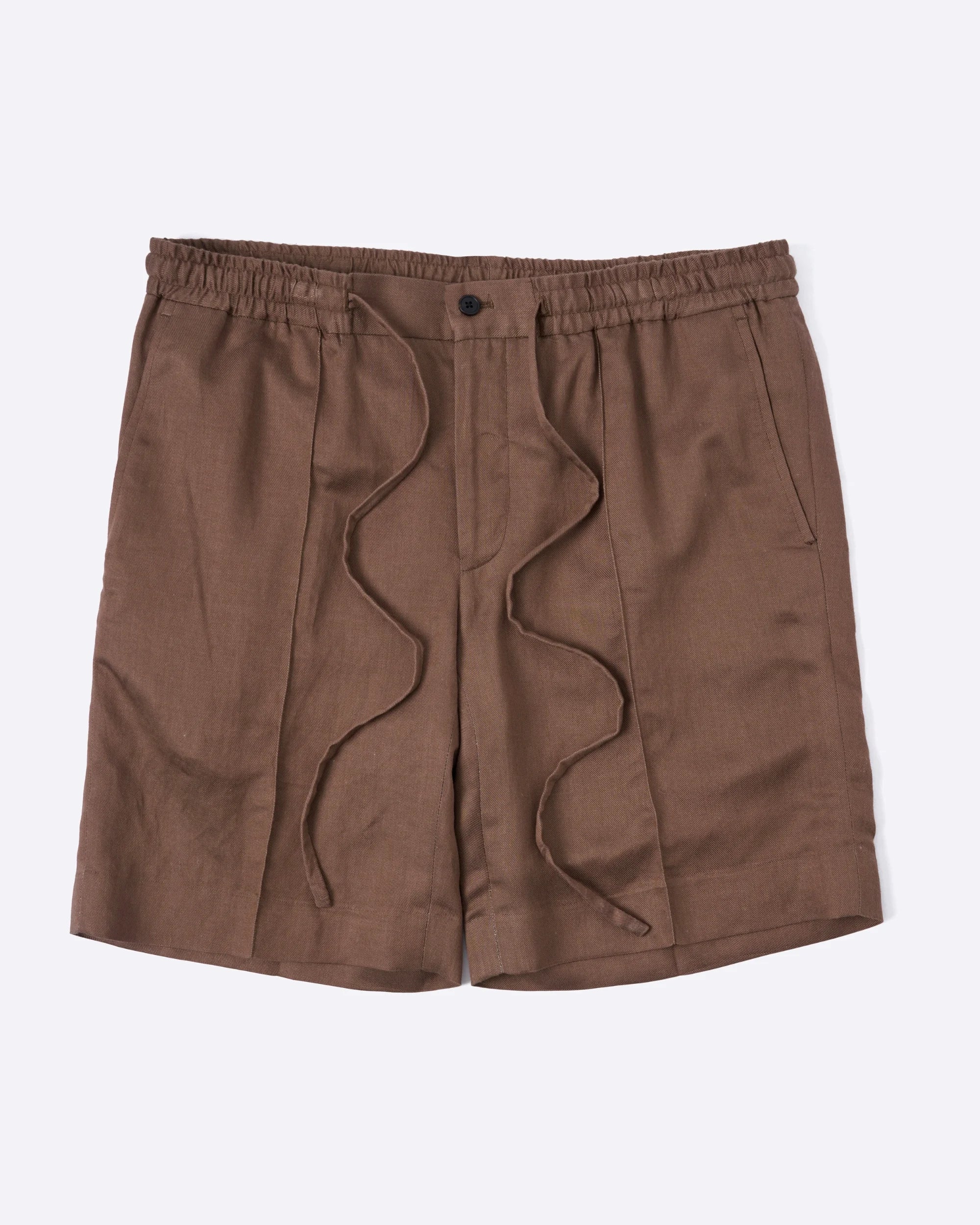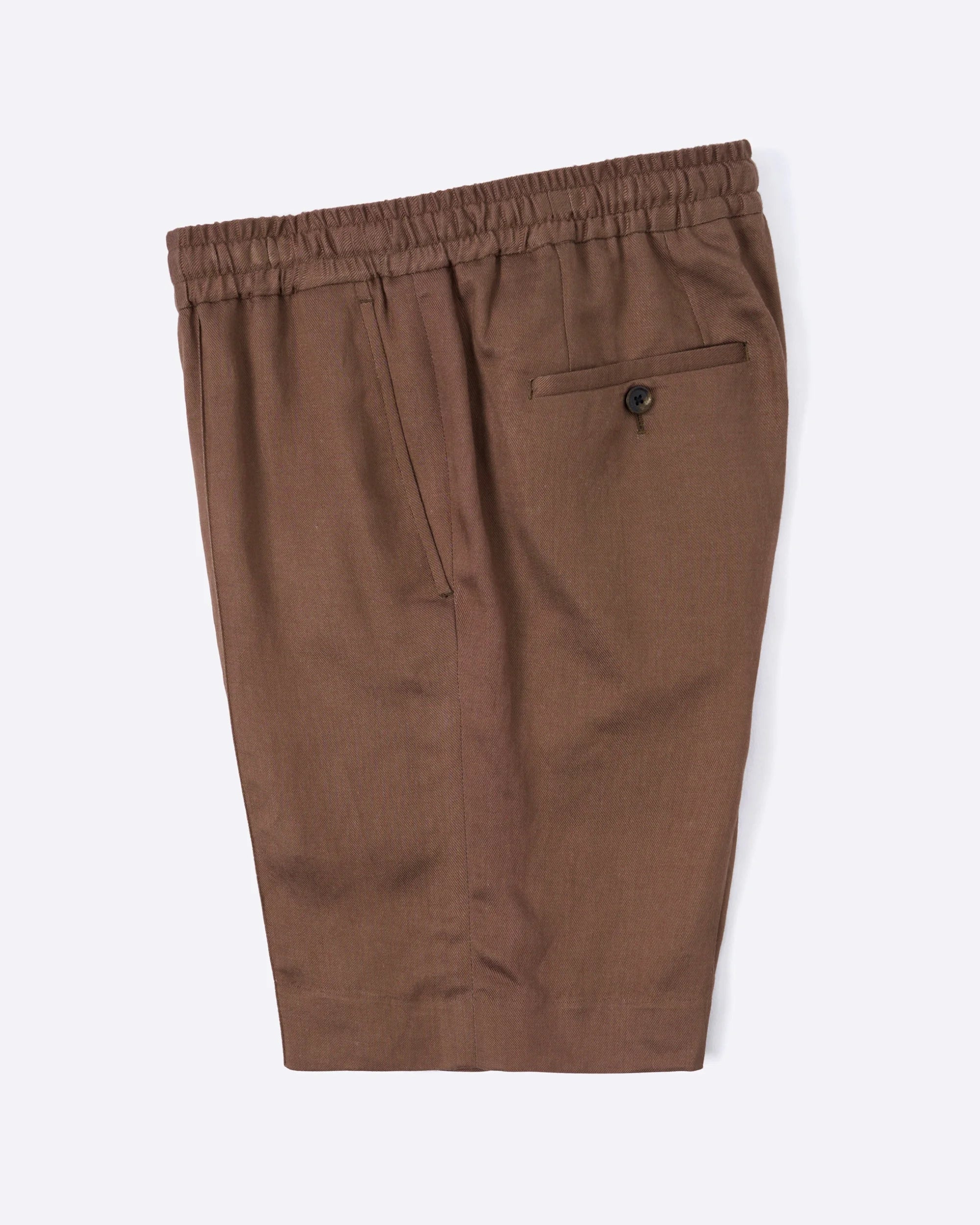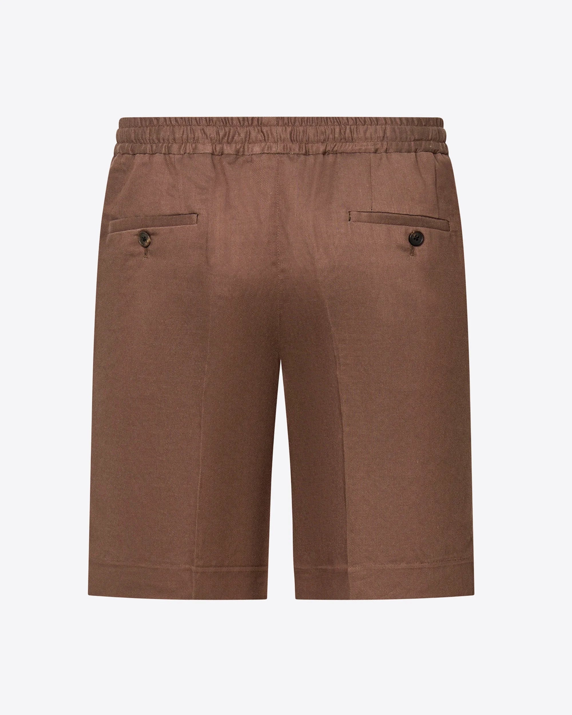 Indulge in luxury with our Havana Shorts in Light Brown. Crafted from 100% Ramie, these shorts feature a unique seersucker texture and pinstitch front detailing. The elastic waistband with drawstring adds both comfort and style, making them perfect for any occasion.