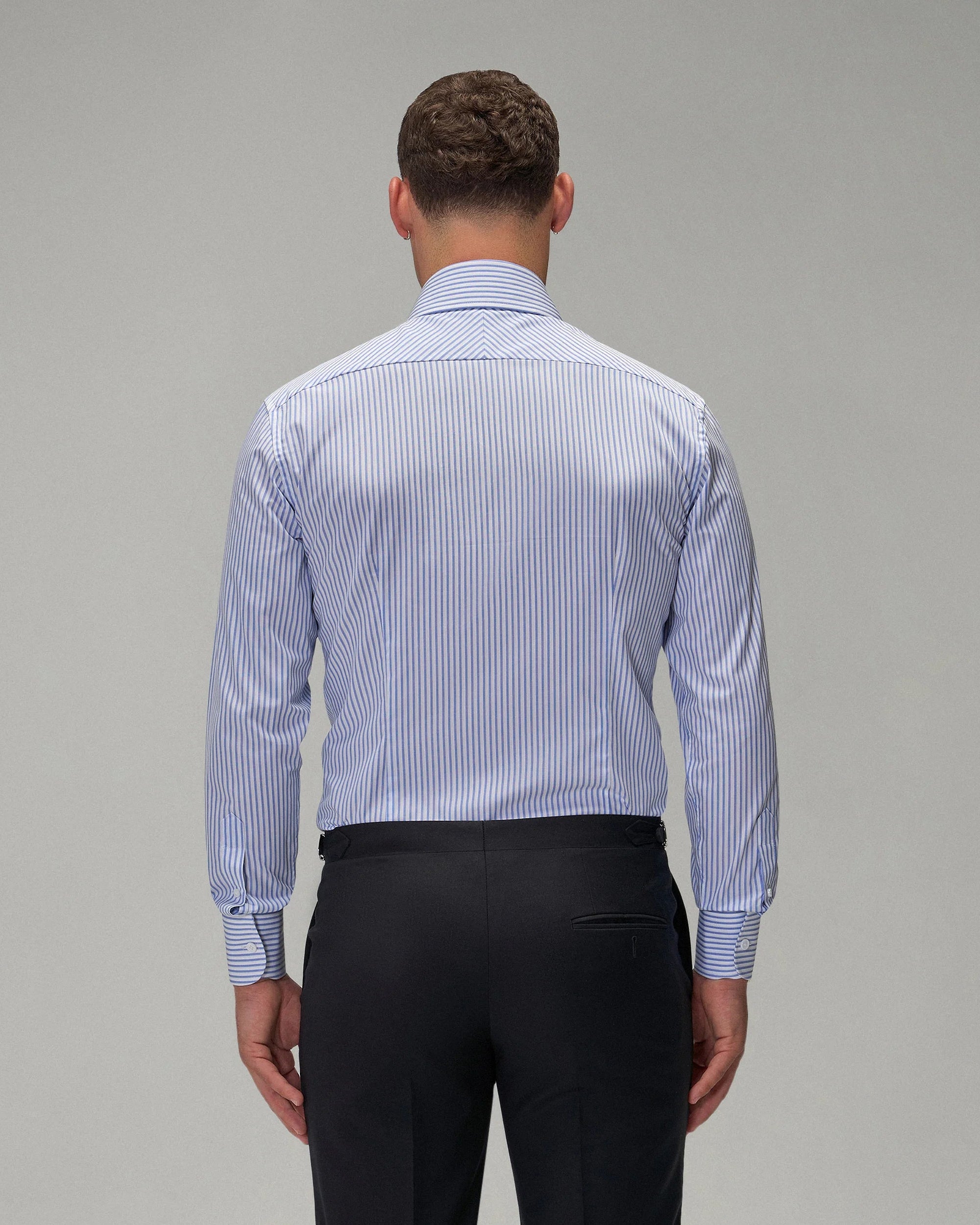 Discover the timeless elegance of our Mr Ford Shirt in Blue and White Dot Stripe, designed for the modern professional. Crafted from premium fabric, this ready-to-wear button-up dress shirt features a distinctive dot stripe pattern, offering a stylish yet subtle flair to your wardrobe.