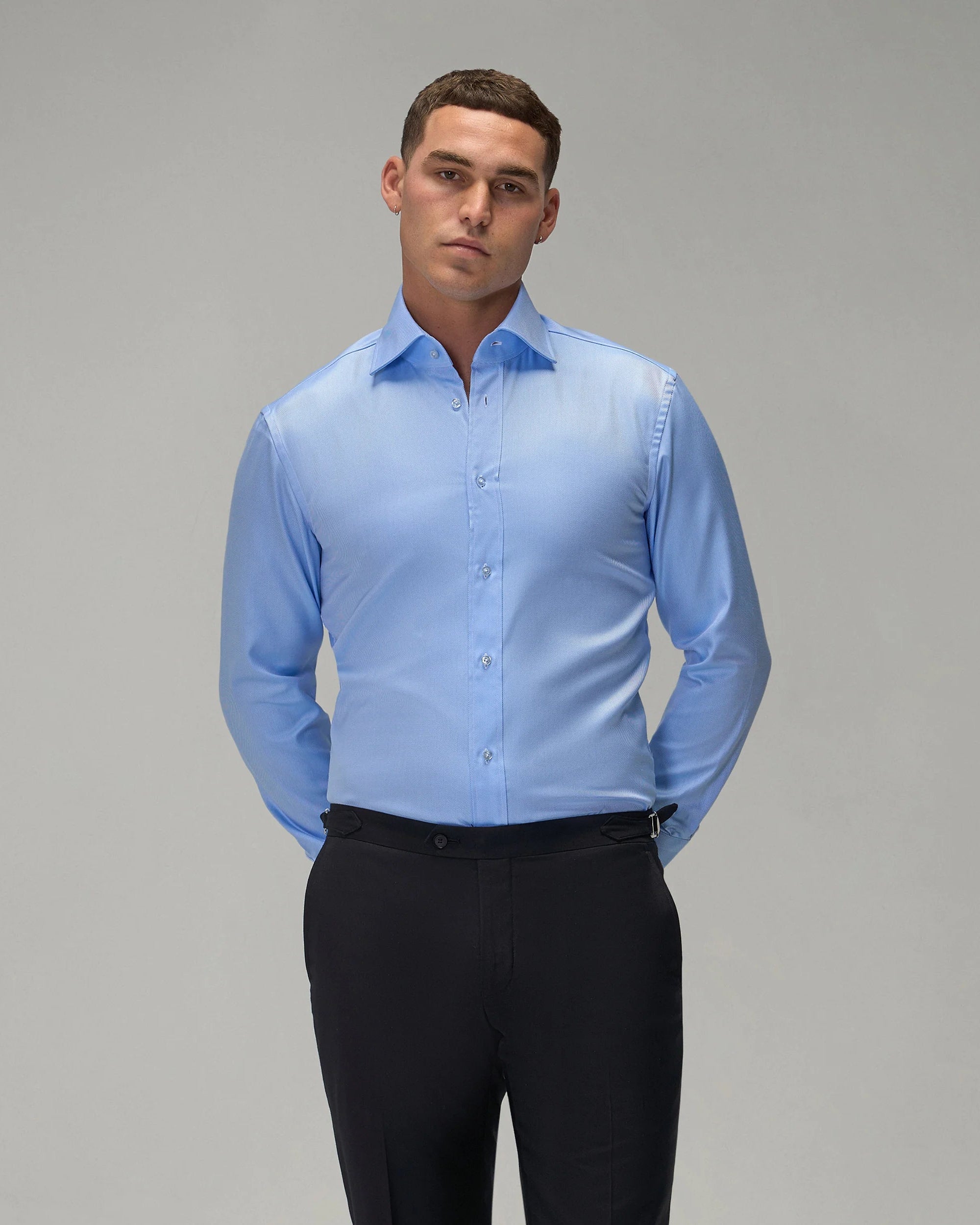 Elevate your ensemble with the Mr Ford Shirt in Blue Heavy Twill. This shirt is a staple for any wardrobe, offering a classic blue colour that's versatile for business meetings or casual gatherings.
