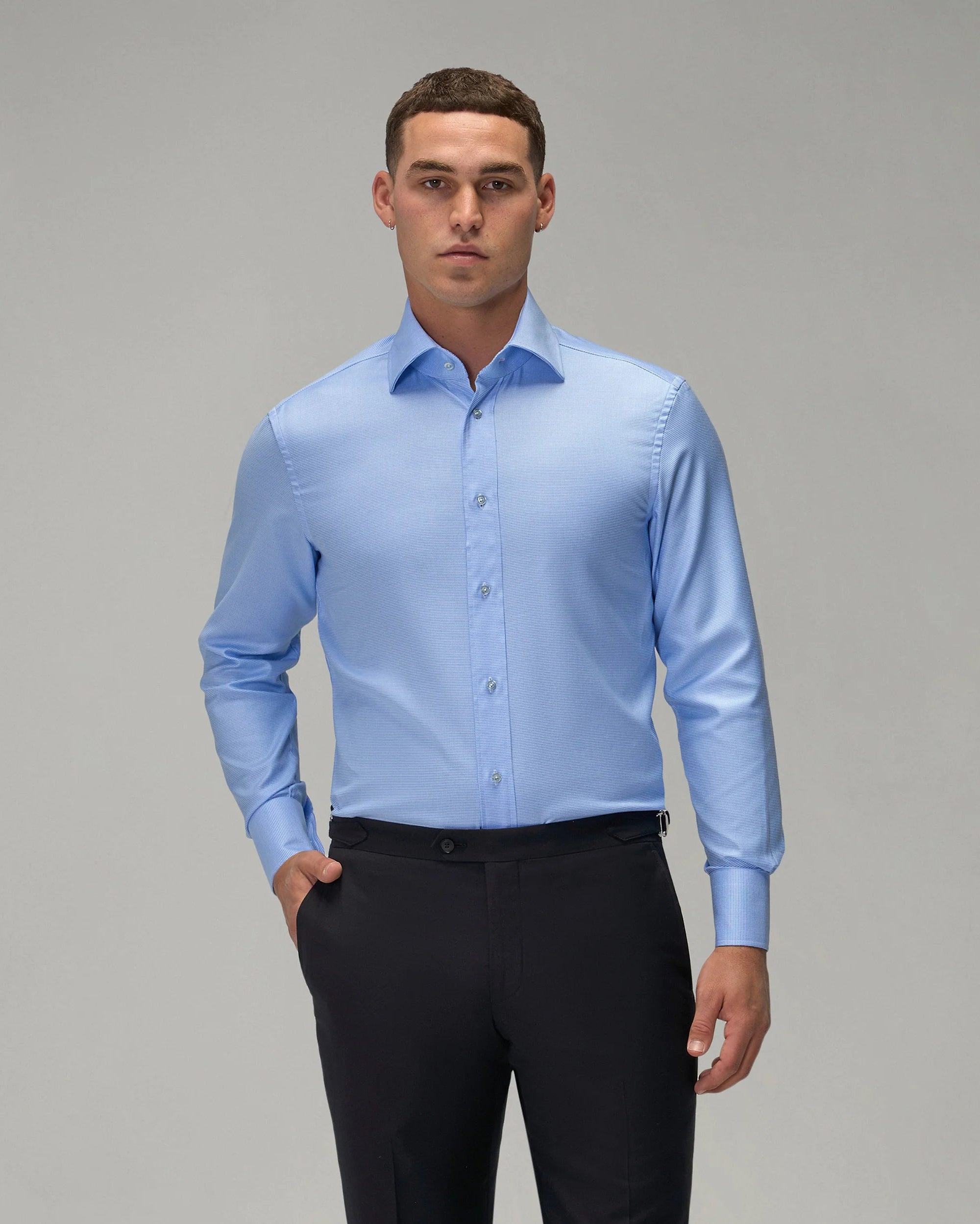 Inject some subtle patterns into your lineup with the Mr Ford Shirt in Blue Mini Houndstooth. This shirt offers a slight texture and pattern to elevate your usual blue shirt game.