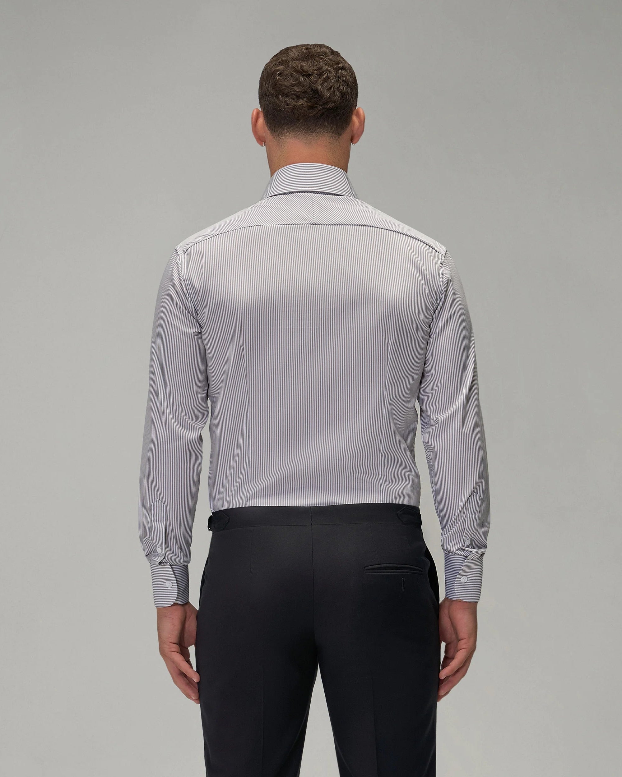 For a shirt that blends seamlessly into your existing wardrobe, opt for the Mr Ford Shirt in Taupe Mid Stripe. Its neutral colour palette and subtle striping are ideal for any setting.