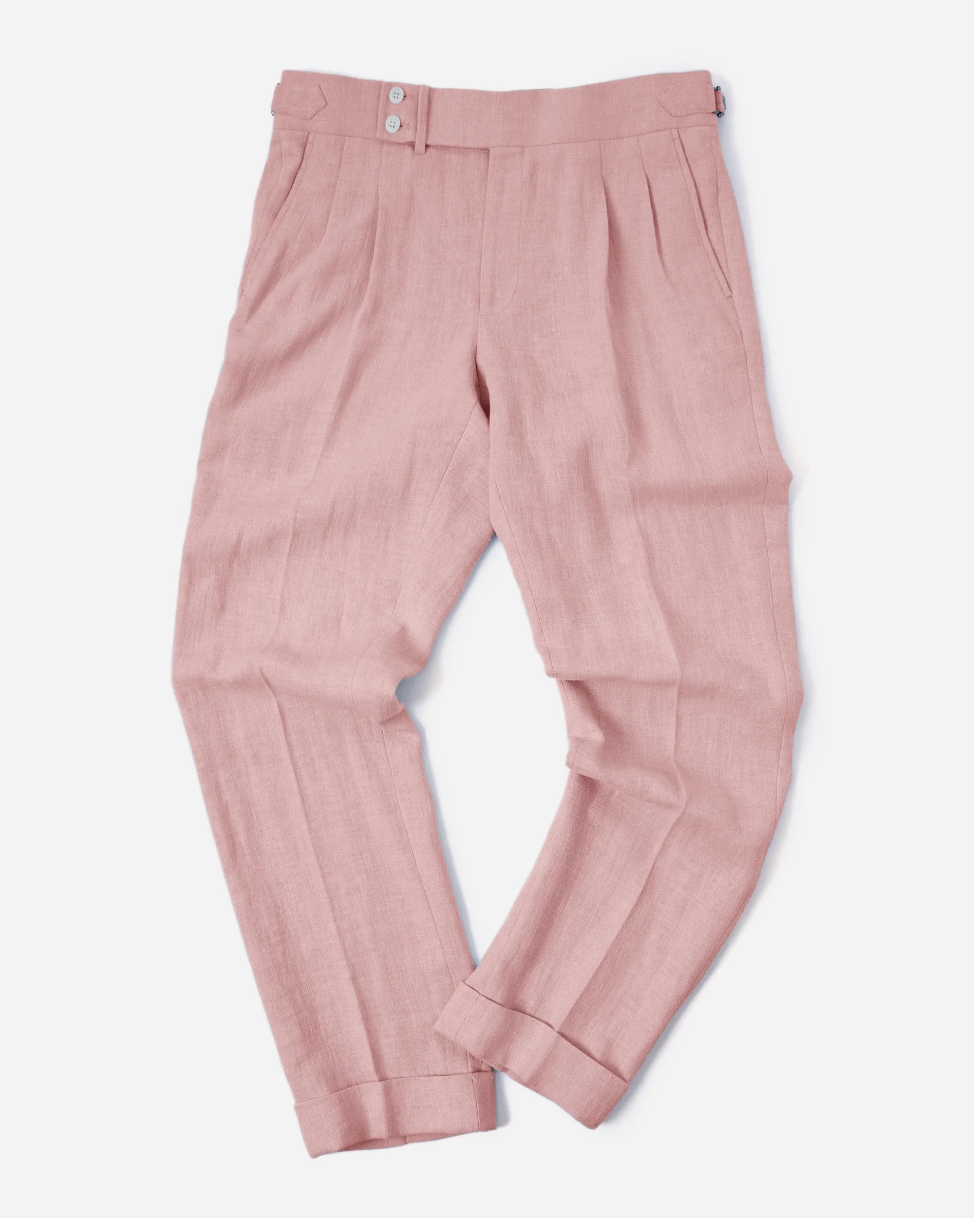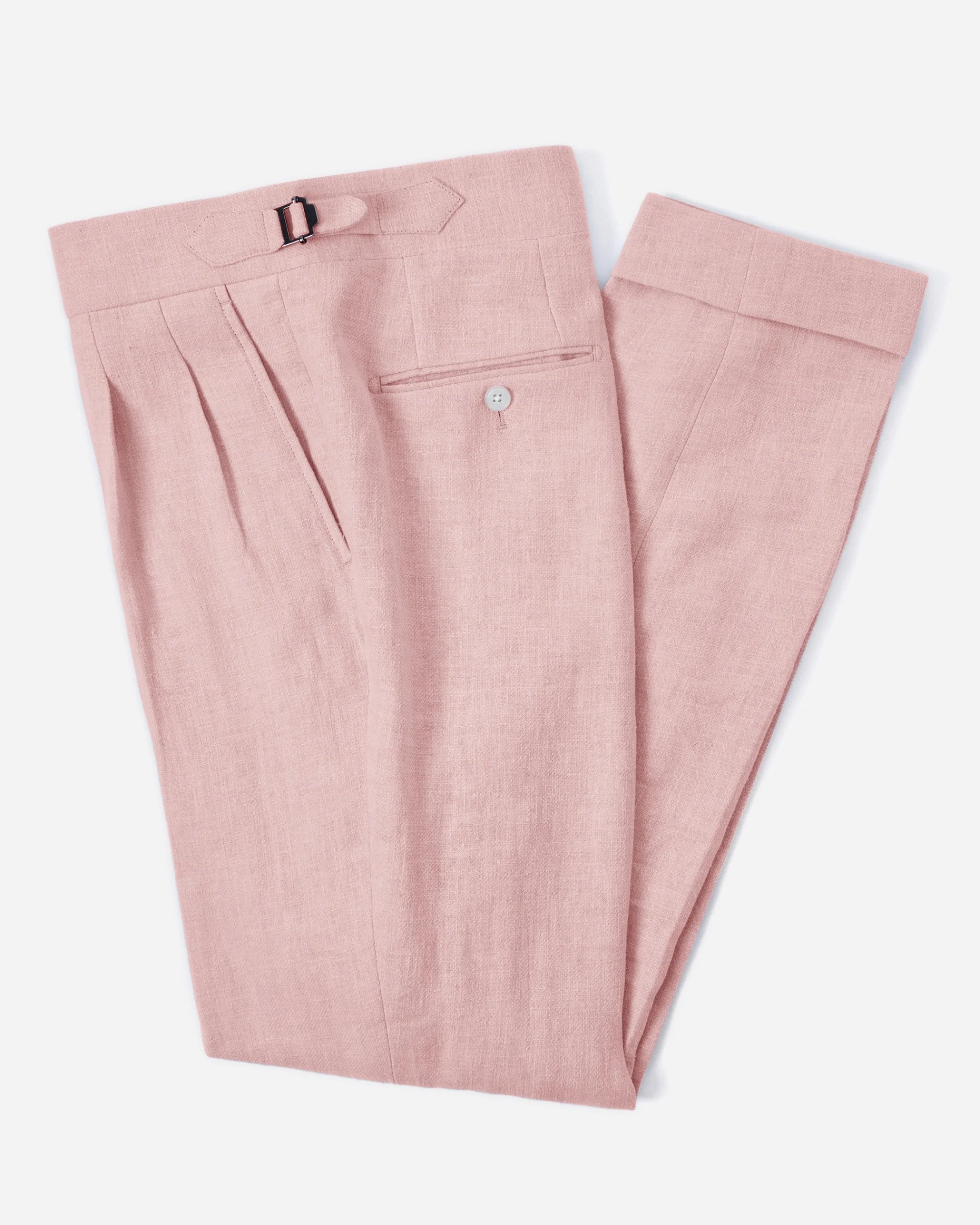 Elevate your wardrobe with our Pink Pleated Pants crafted from the same luxuriously soft fabrication as our Deconstructed Men's Jacket. Featuring double pleats for a nod to sartorial tailoring, these pants boast a timeless elegance with a relaxed modern interpretation.
