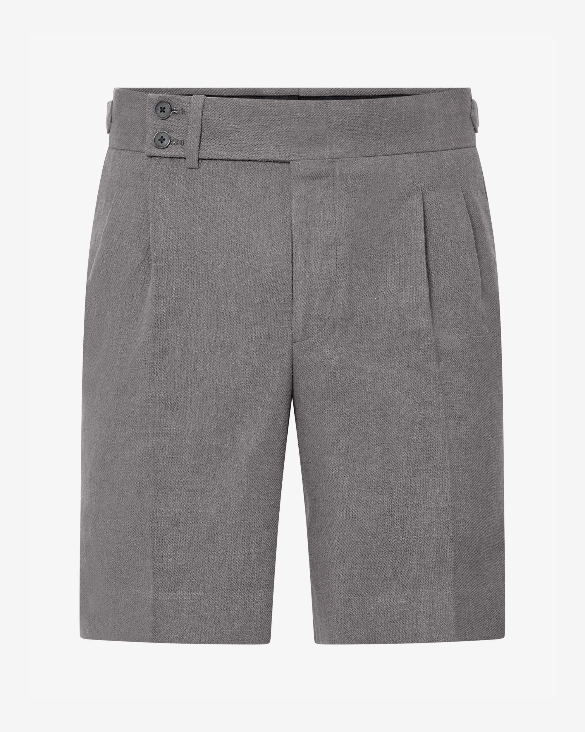Crafted from sumptuously soft fabric, these shorts in Grey offer a refined yet relaxed appeal. With their tailored silhouette and double pleats, they echo the sartorial elegance whilst offering a more casual aesthetic.