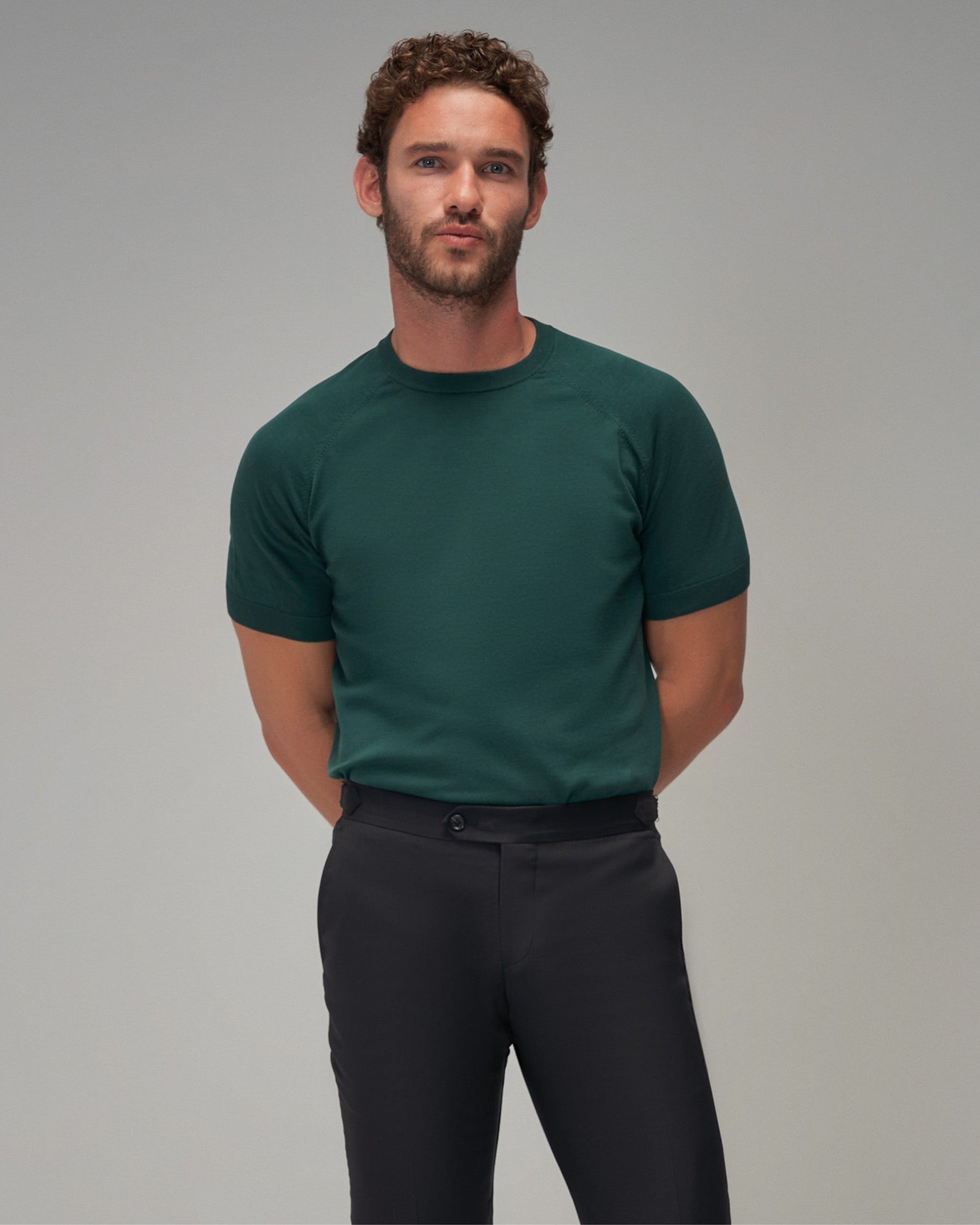 Tailored from a luxurious soft cotton knit and available in a wide range of colours, this Brent Wilson t-shirt features a raglan sleeve and wide hem finishes.