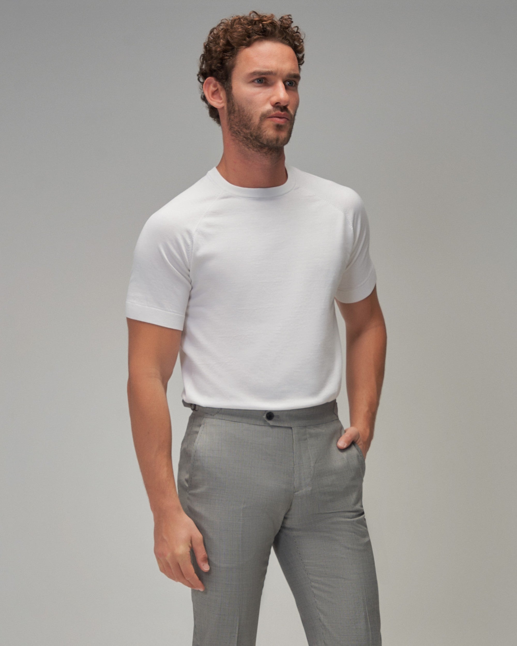 Tailored from a luxurious soft cotton knit and available in a wide range of colours, this Brent Wilson t-shirt features a raglan sleeve and wide hem finishes.