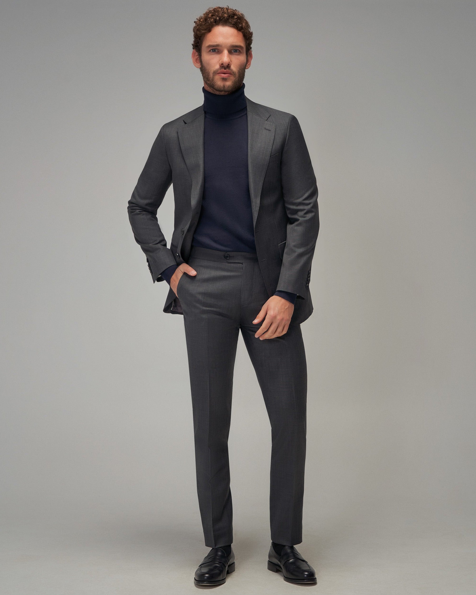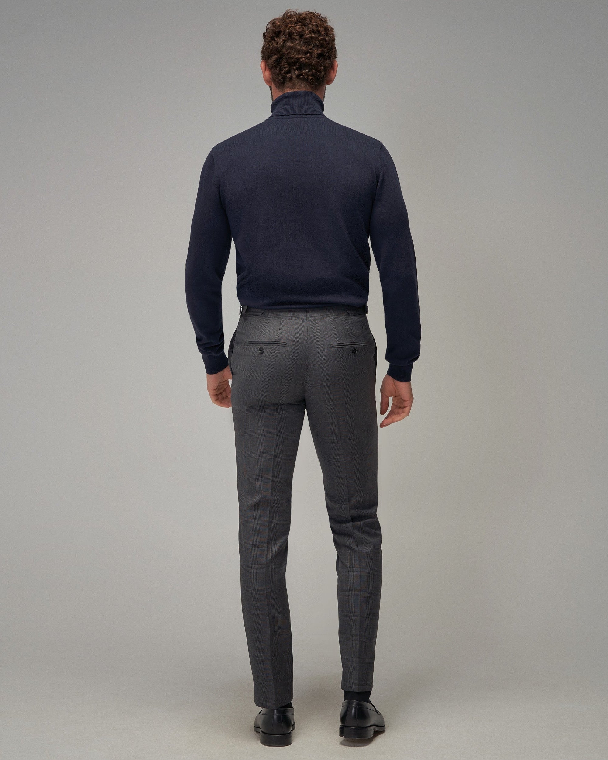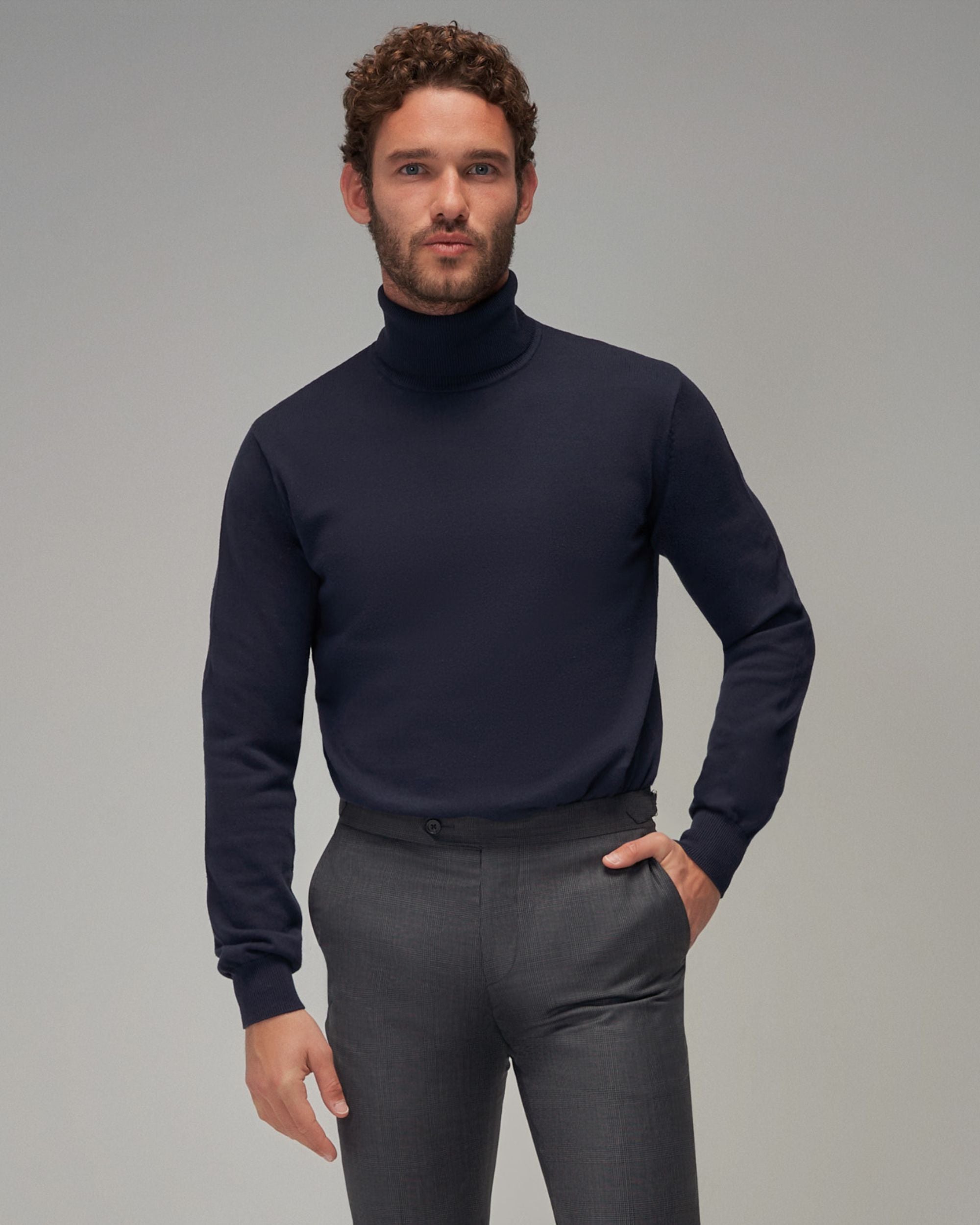 Indulge in luxury with our Roll Neck Knit Top in navy. Made from 100% merino wool, this sophisticated sweater elevates any outfit. The soft, high-quality fabric provides warmth and comfort while the roll neck adds an exclusive touch. Perfect for a cozy and stylish winter look.
