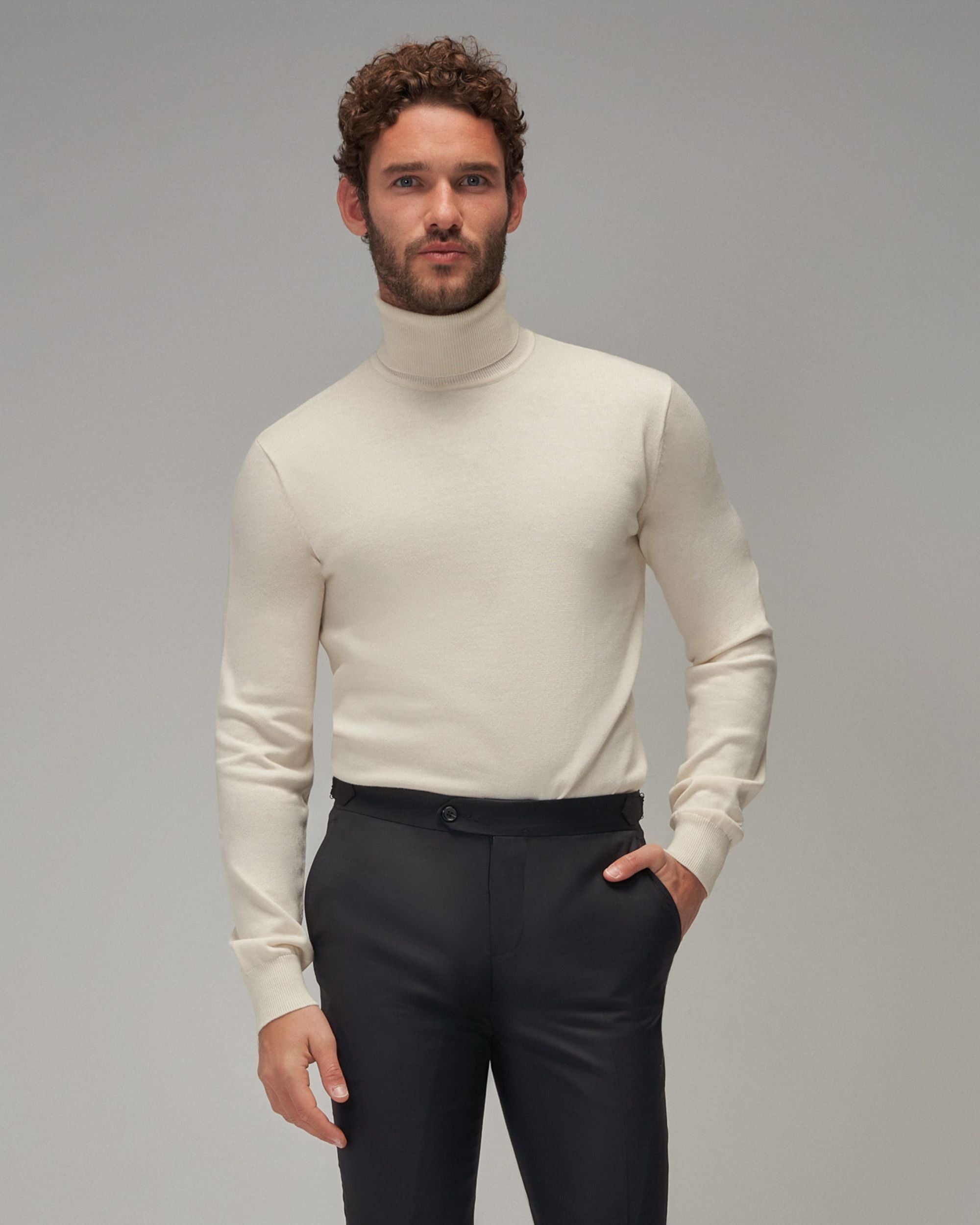 Indulge in the luxurious comfort and style of our Roll Neck Knit Top in White. Crafted from 100% premium merino wool, this sophisticated sweater offers both softness and warmth. Perfect for any occasion, its elegant roll neck design adds a touch of sophistication to your wardrobe.