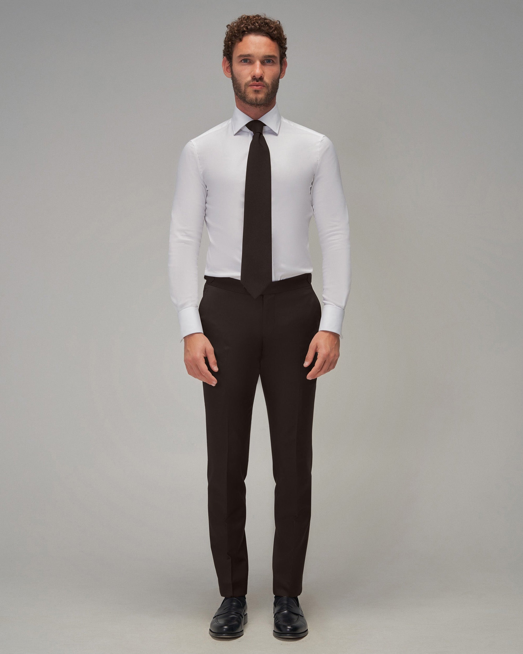 - Flat front tailored pant