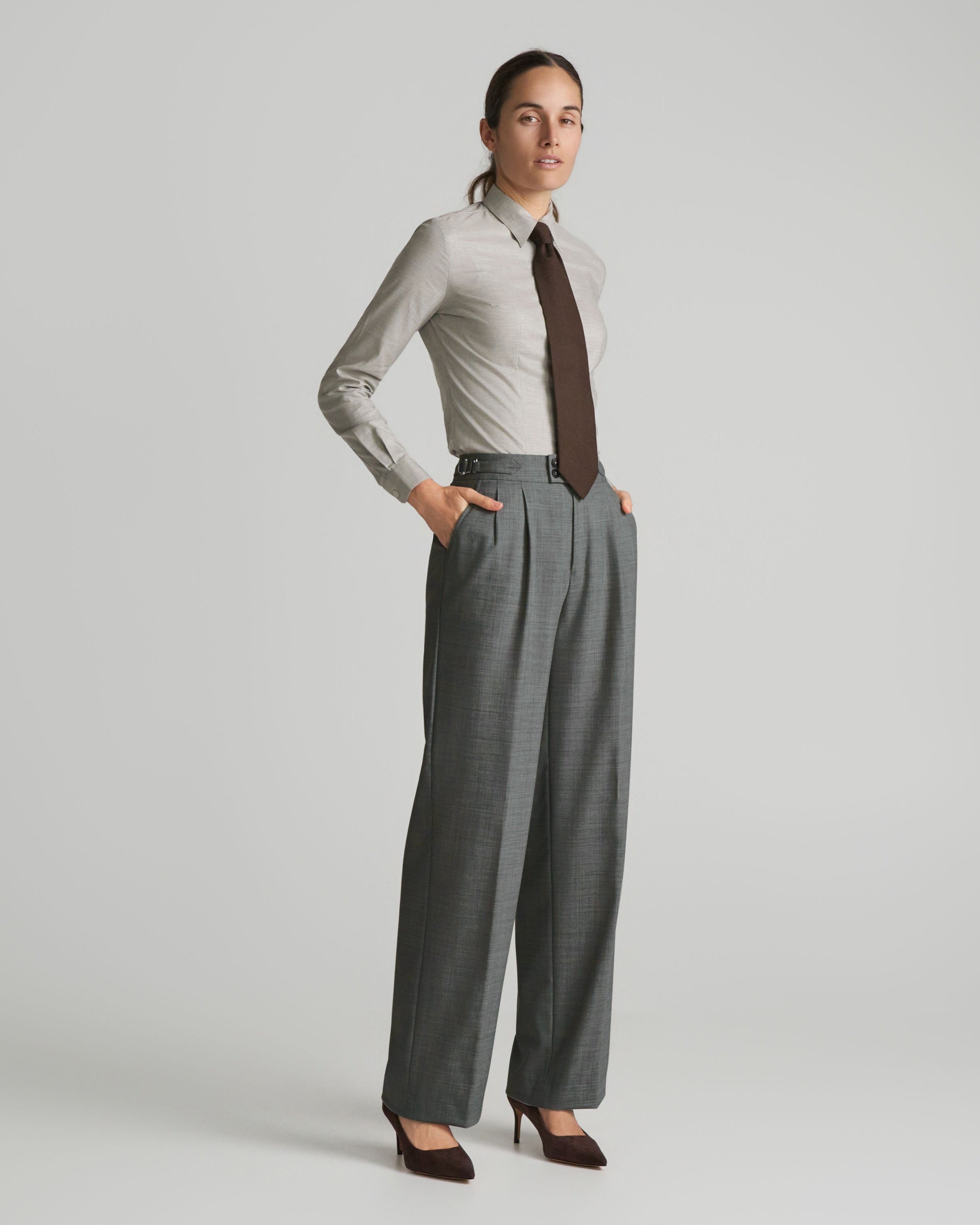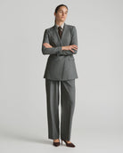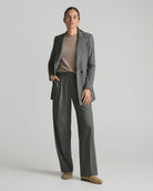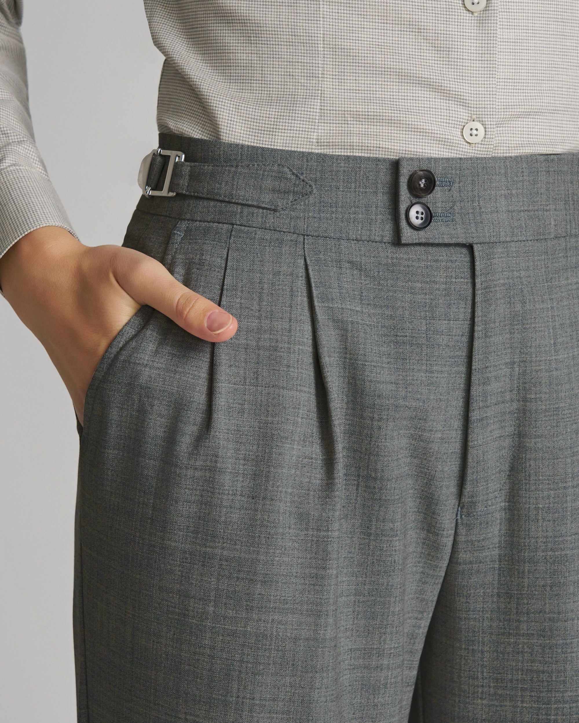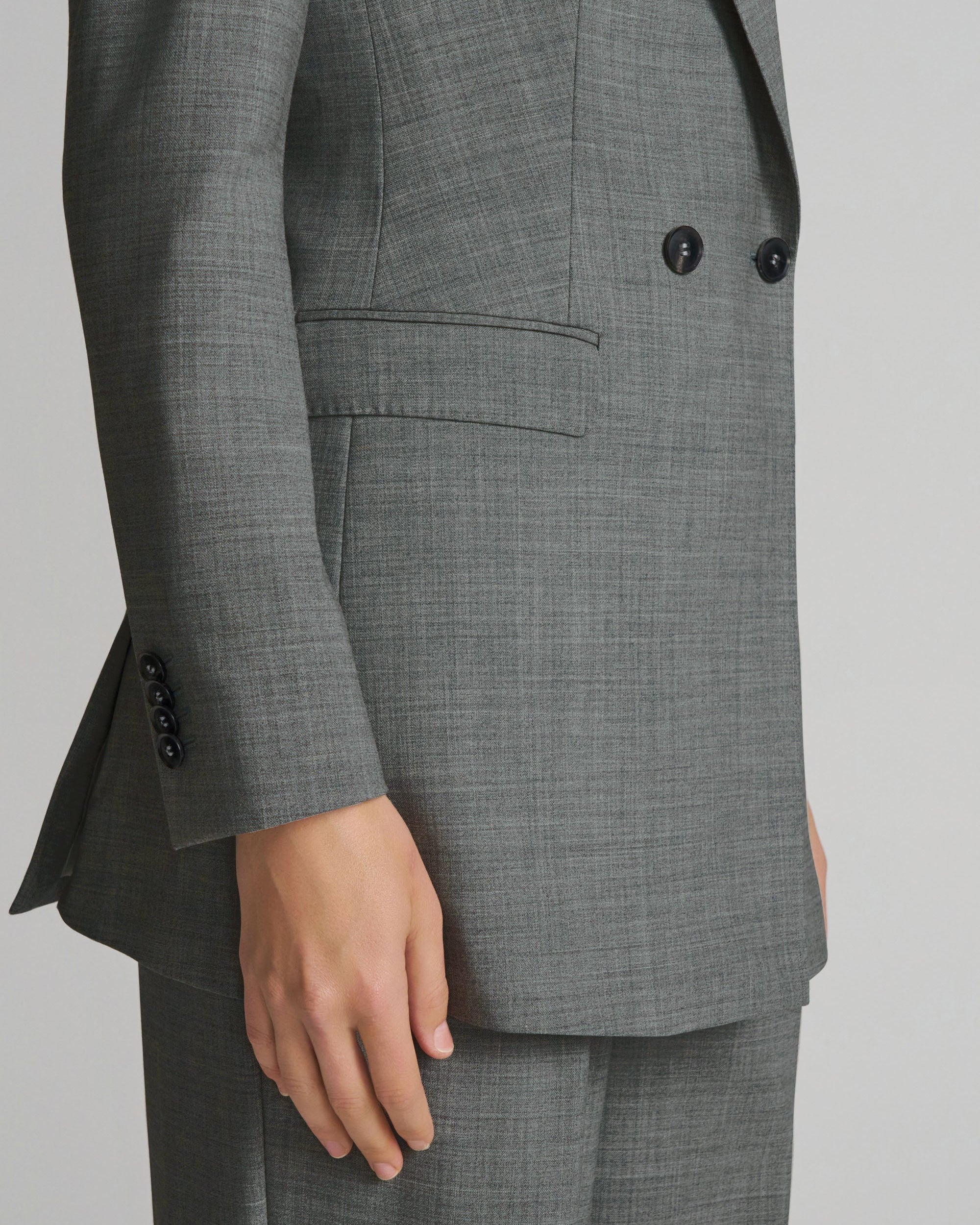 The jacket delivers sharp structure and is available as a double-breasted peak lapel blazer or a single-breasted blazer. It is designed to pair with matching tailored trousers, which feature front pleats and a relaxed, generous cut for added depth and a more traditional silhouette. Together, the blazer and trousers create a polished look that works across different occasions while exuding confidence and refinement.