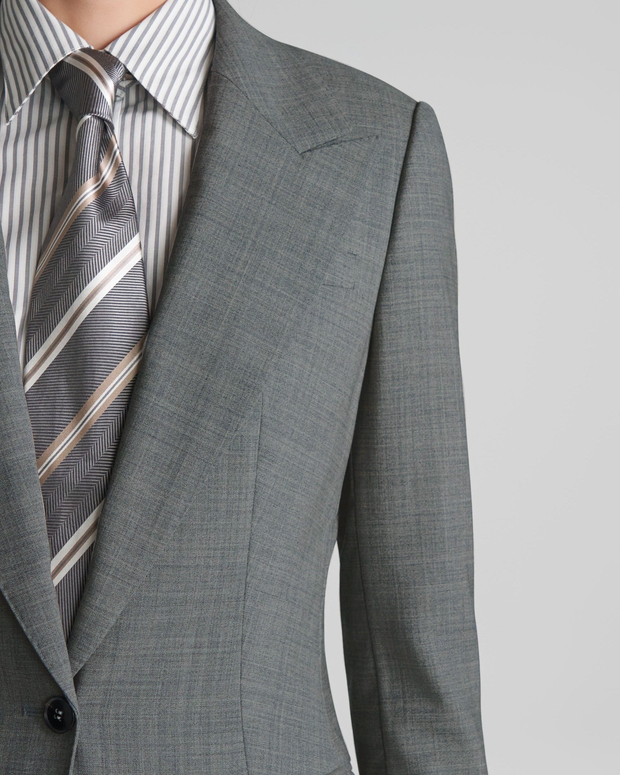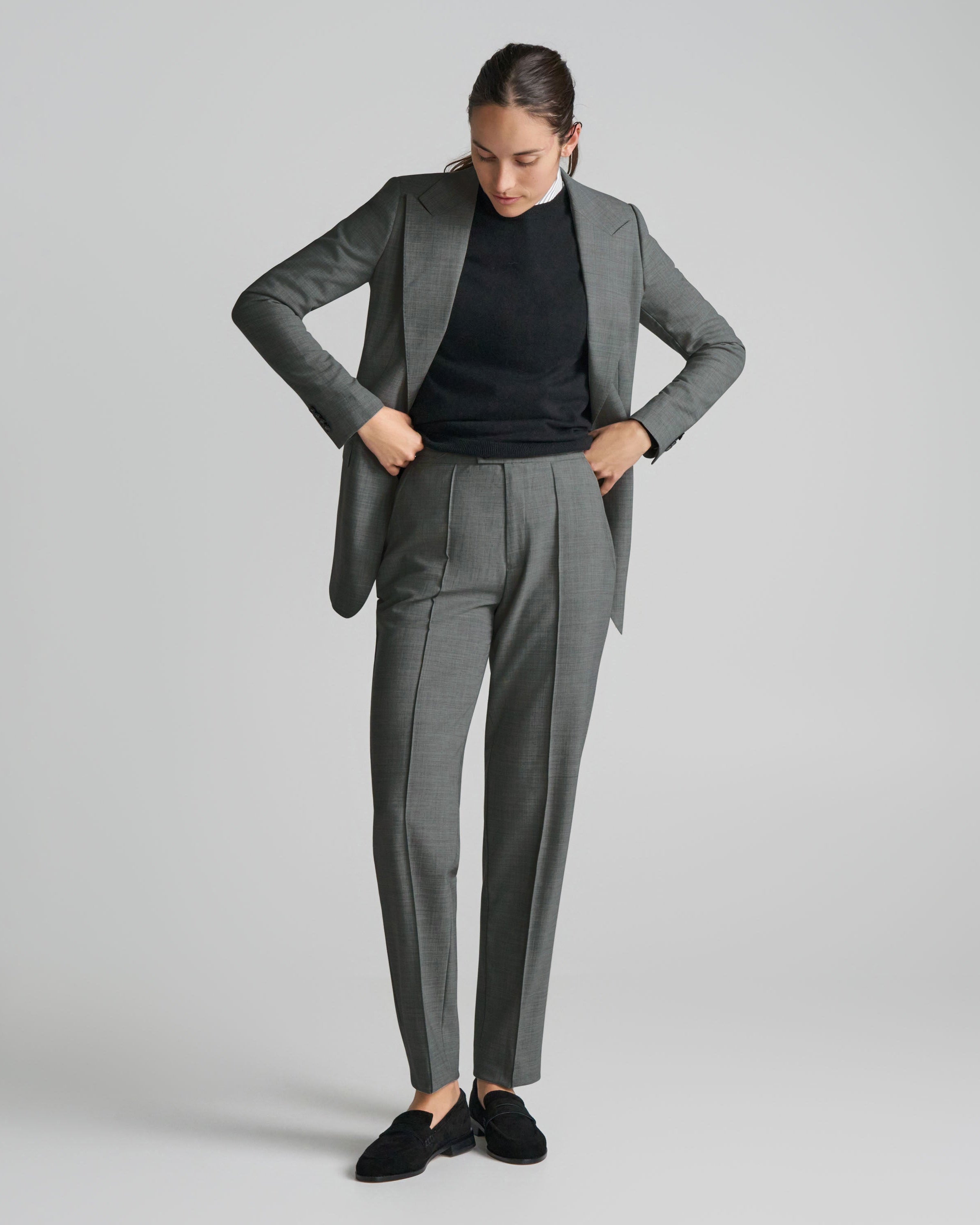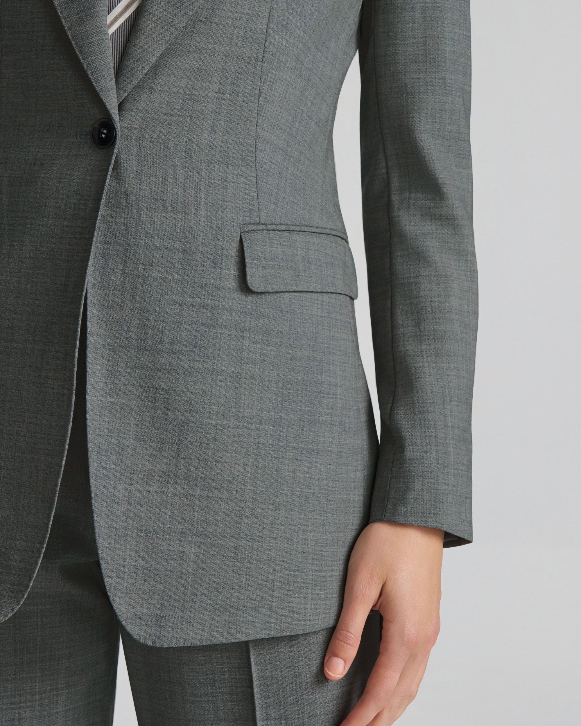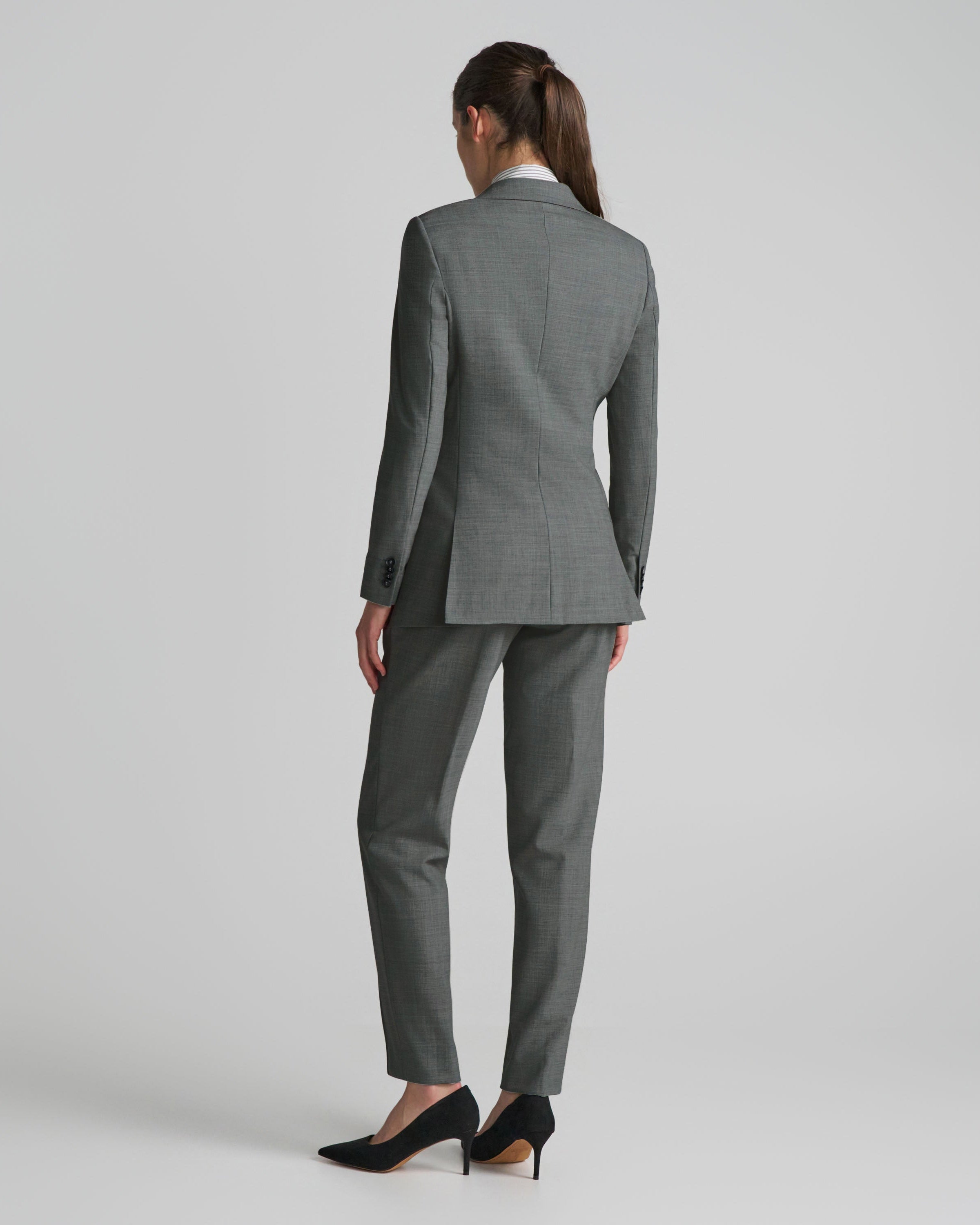 The jacket delivers sharp tailoring for a polished finish and is available as a double-breasted peak lapel blazer or a single-breasted blazer. It is designed to pair with matching tailored trousers, which are slightly tapered to create a smooth, elegant line. The result is a refined look that feels both contemporary and effortless, creating a polished appearance suitable for any occasion.
